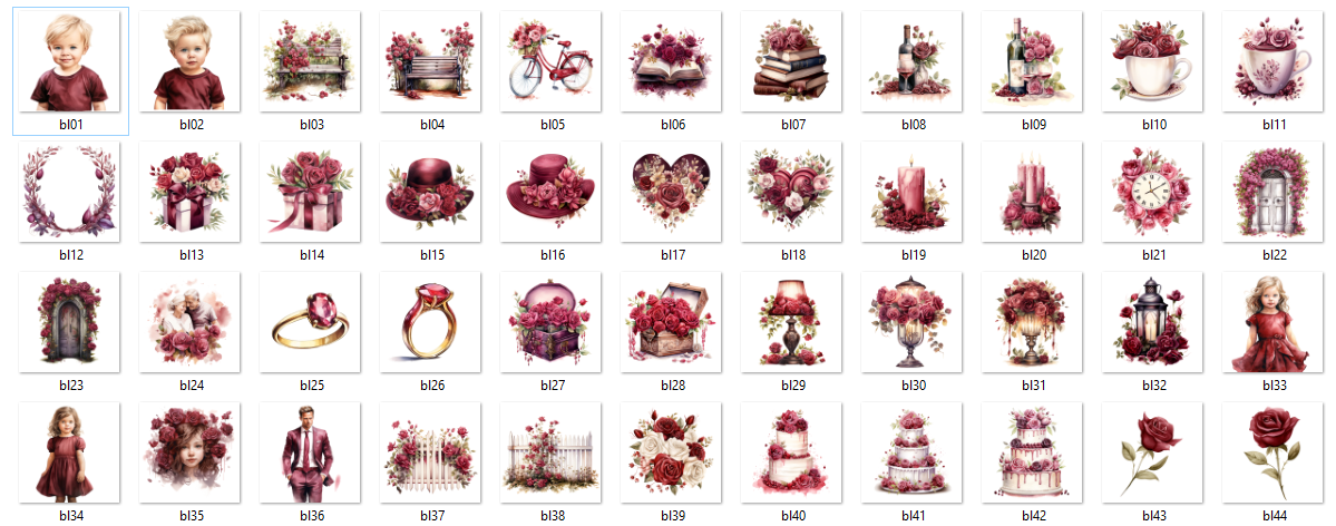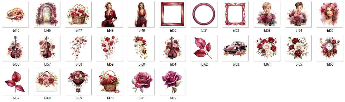 Burgundy Love - 72 osobnych cyfrowych plików PNG na przezroczystym tle, 300DPI.