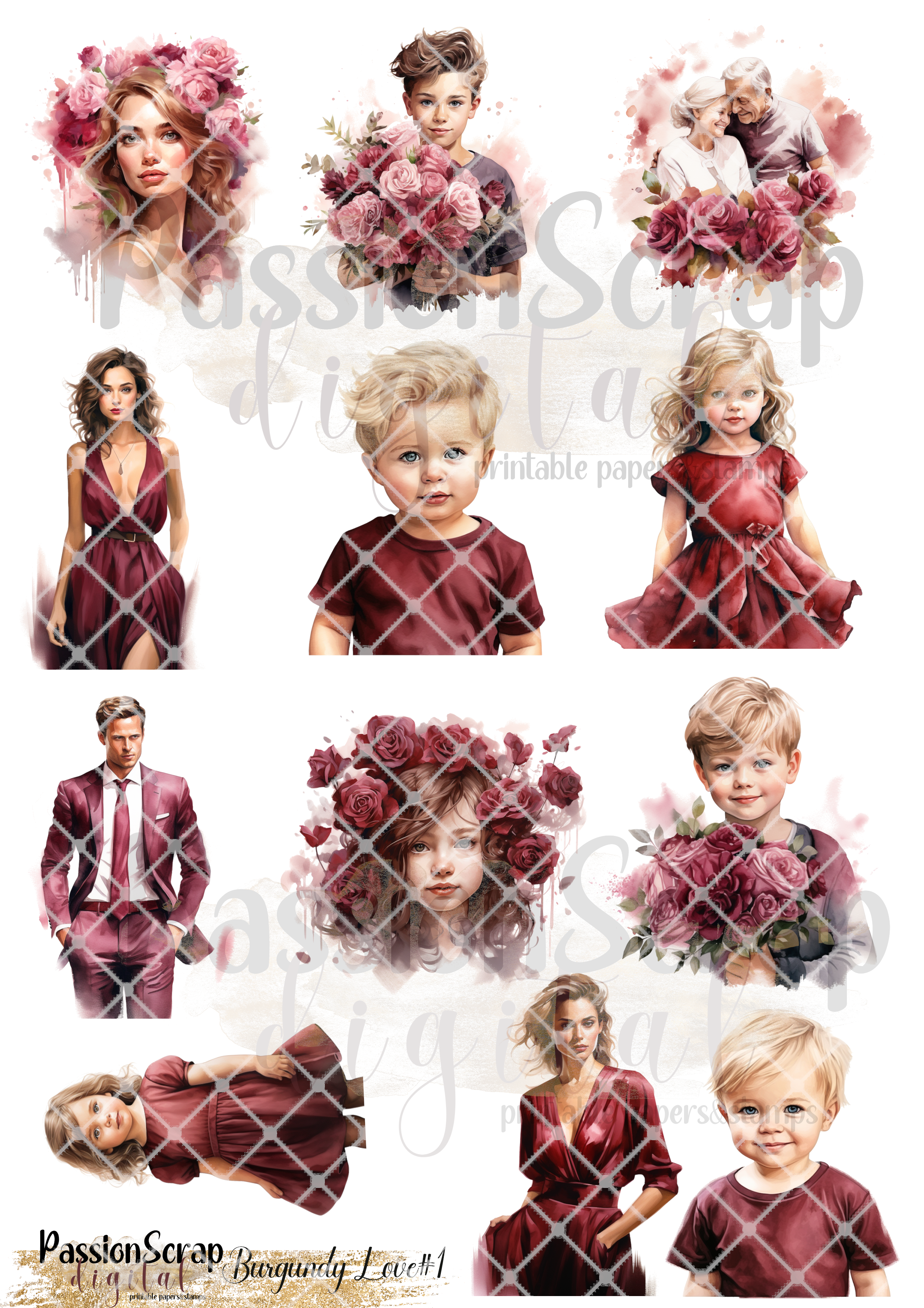 BURGUNDY LOVE#1 GRAPHICS PRINTABLE DIGITAL A4