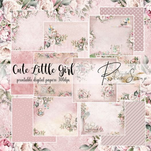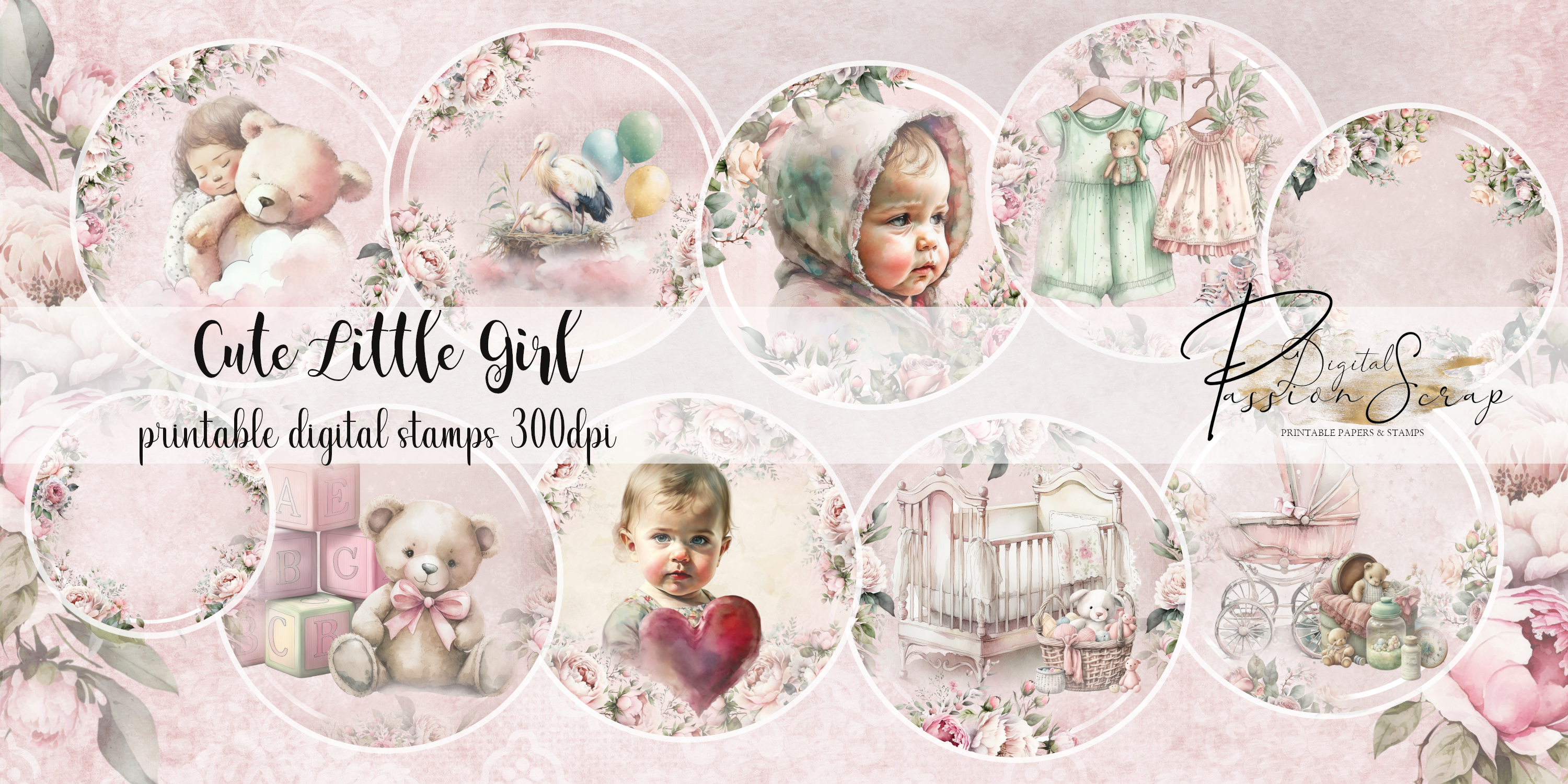 CUTE LITTLE GIRL ZESTAW DIGITAL PAPERS&STAMPS
