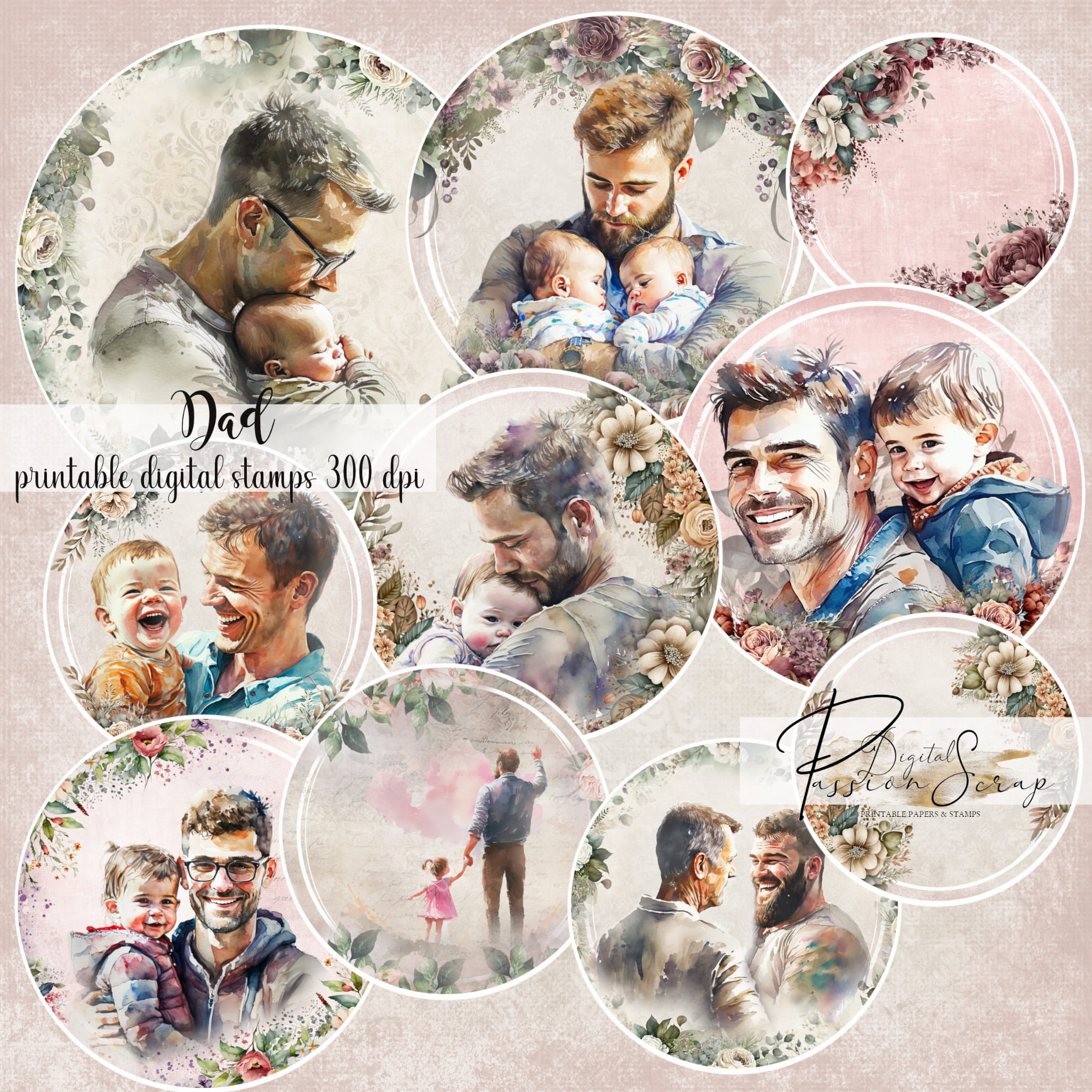 Dad - 10 osobnych digi stempli PNG do samodzielnego wydruku w jakości 300 DPI