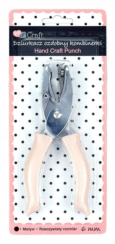 Dziurkacz ozdobny - kombinerki służy do wycinania drobnych wzorów, co czyni go niezawodnym narzędziem w tworzeniu konfetti. Stalowa głowica pozwala na wycinanie wzorów w papierze, plastiku, skórze, filcu oraz cienkim metalu. - Wygodny gumowy uchwyt, - Wbudowany pojemnik na konfetti. Wielkość wzoru: 6 mm