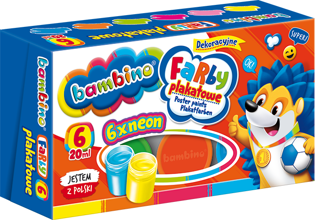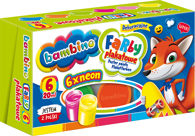 Farby plakatowe dekoracyjne Bambino, 6 kolorów neonowych