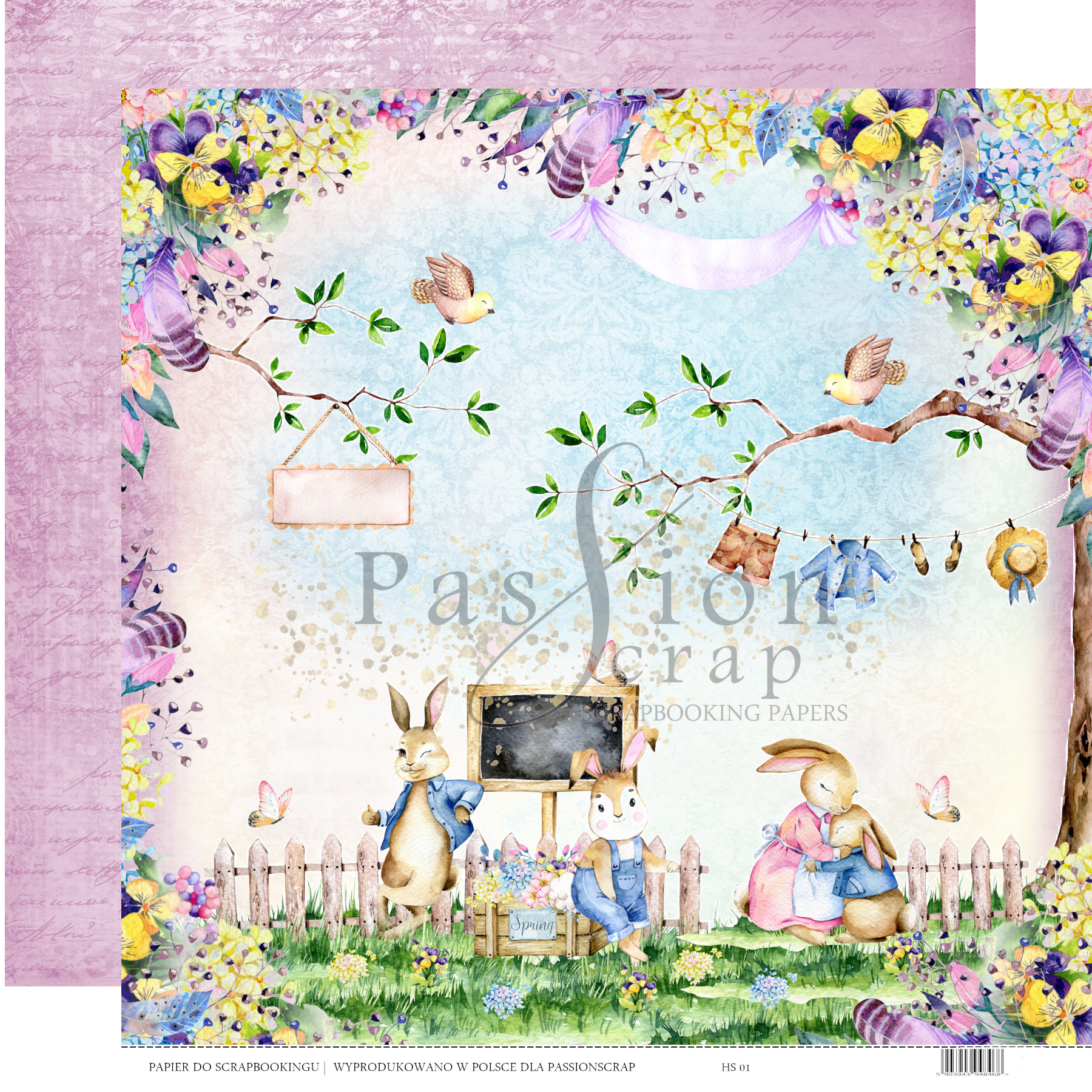 Dwustronny arkusz papieru do scrapbookingu 30,5x30,5cm - PassionScrap - Hello Spring 01