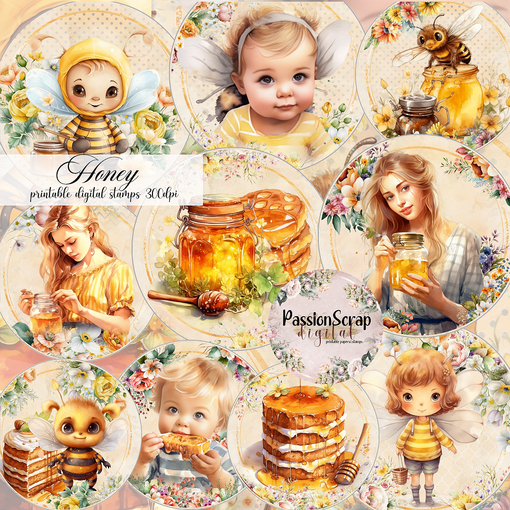 Honey - 10 osobnych digi stempli PNG do samodzielnego wydruku w jakości 300 DPI Po opłaceniu zamówienia na podany przy rejestracji adres email otrzymasz link z dostępem do pobrania plików.