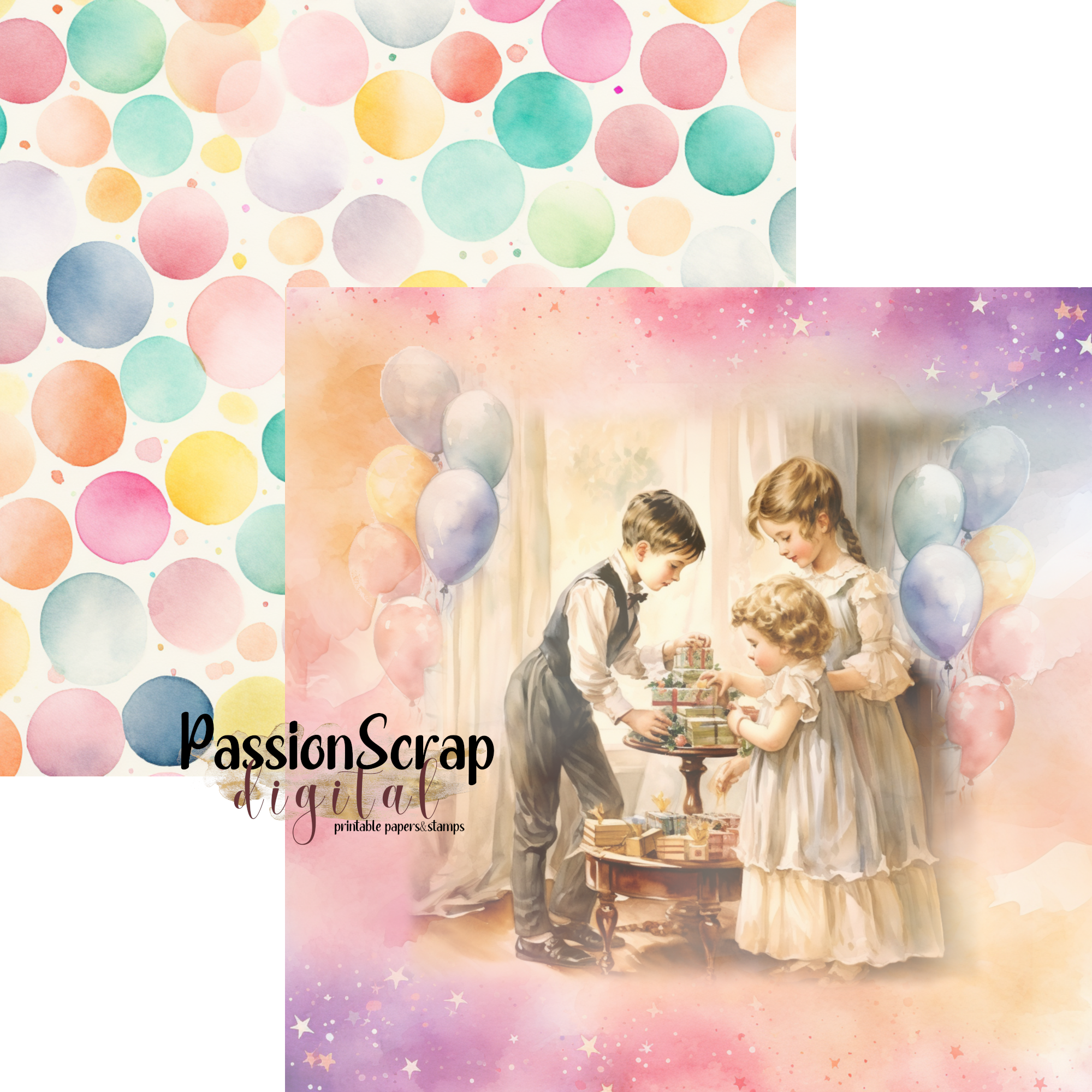 Kids Party - 12 osobnych digi papierów PNG do samodzielnego wydruku w jakości 300 DPI Po opłaceniu zamówienia na podany przy rejestracji adres email otrzymasz link z dostępem do pobrania plików. Link ważny jest 7 dni i można z niego skorzystać 3 razy.