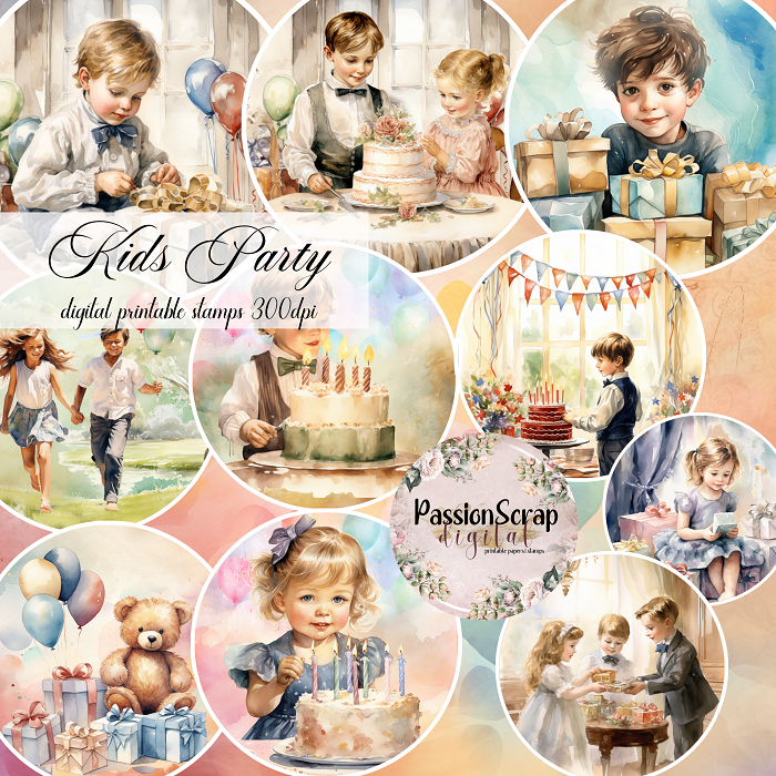 KIDS PARTY ZESTAW DIGITAL PAPERS&STAMPS