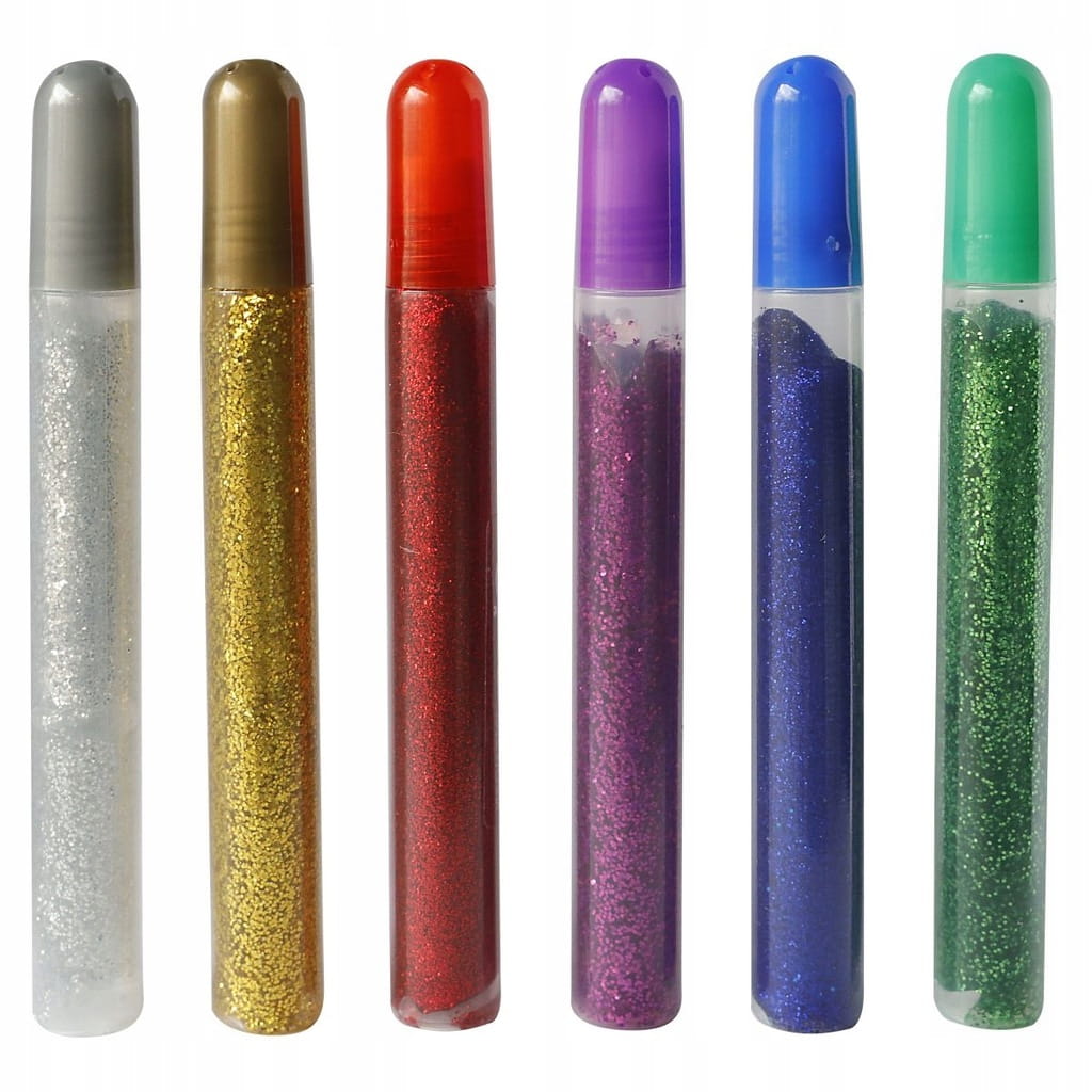 ➡️BROKATOWY KLEJ 6 kolorów ZESTAW 15 ml Titanum ✅Kleje z brokatem w miękkich tubkach, wygodne i łatwe w użyciu dzięki specjalnej końcówce umożliwiającej precyzyjną aplikację. ✅Nie wymagają dodatkowych akcesoriów i nie brudzą rąk.