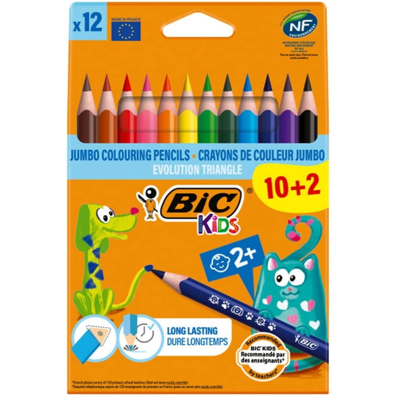 Wzmocnione kredki ołówkowe o trójkątnym przekroju. Doskonałe dla dzieci powyżej 2. roku życia: pomagają prawidłowo układać palce. Wytrzymały wkład i oprawa Trójkątny kształt pomaga dzieciom prawidłowo układać palce