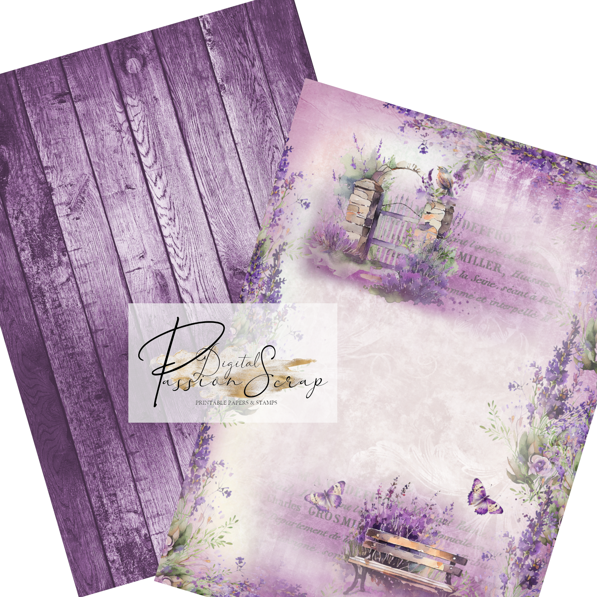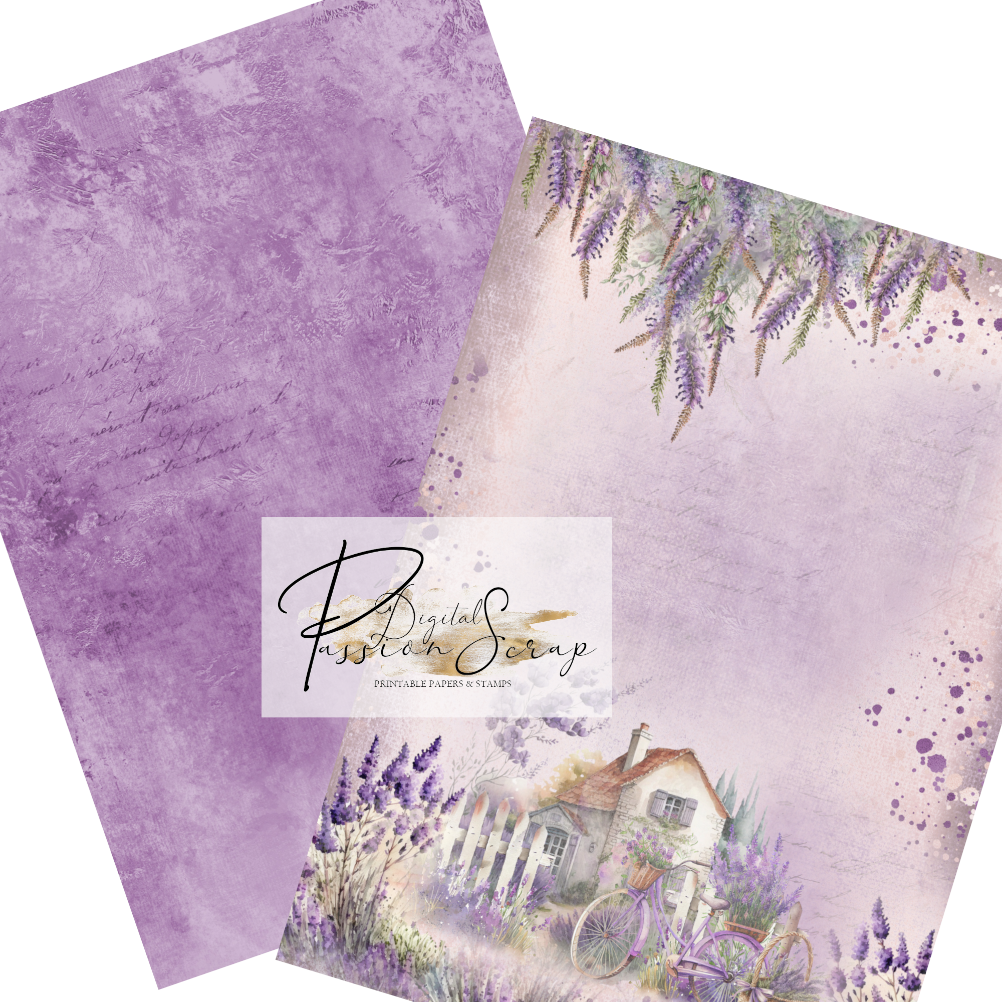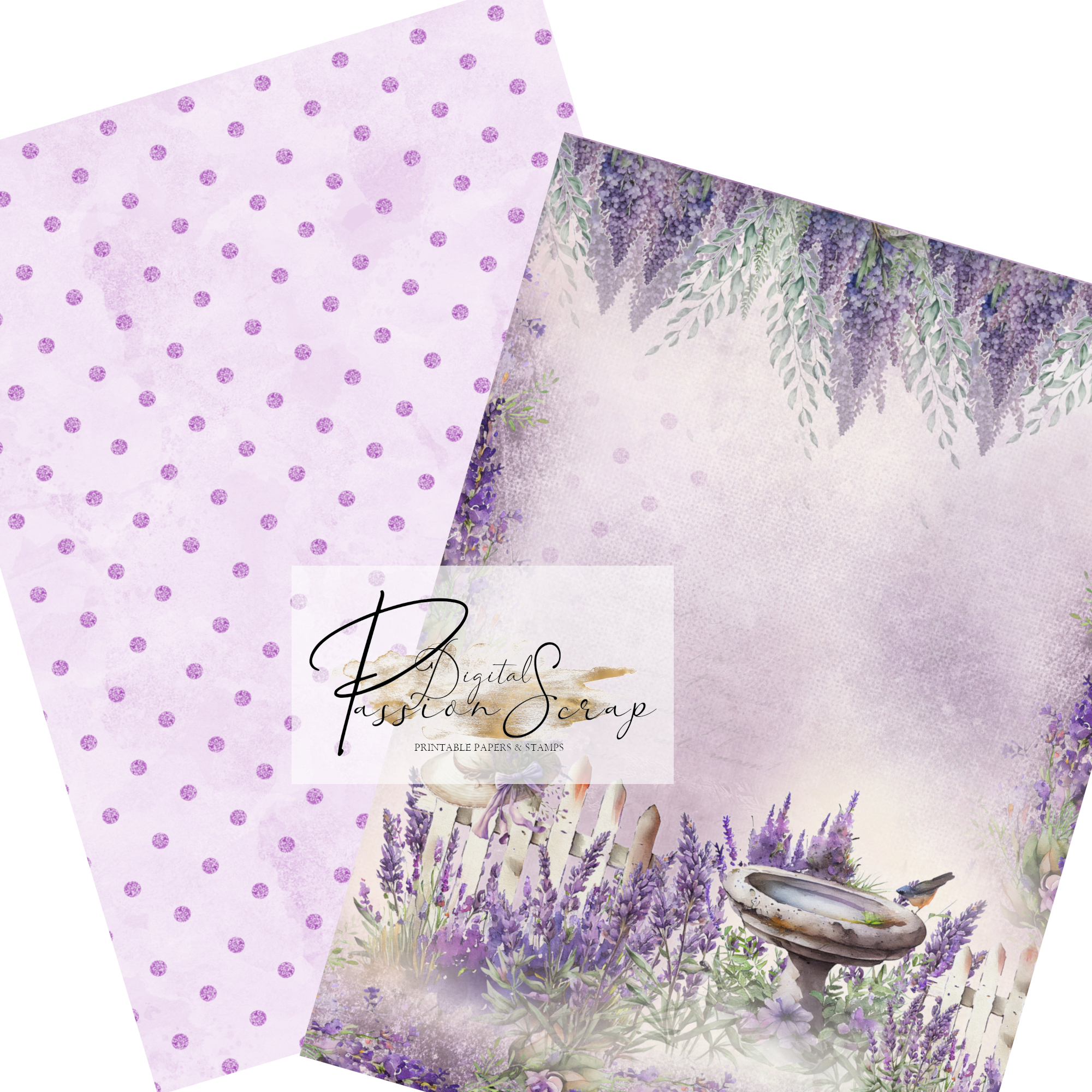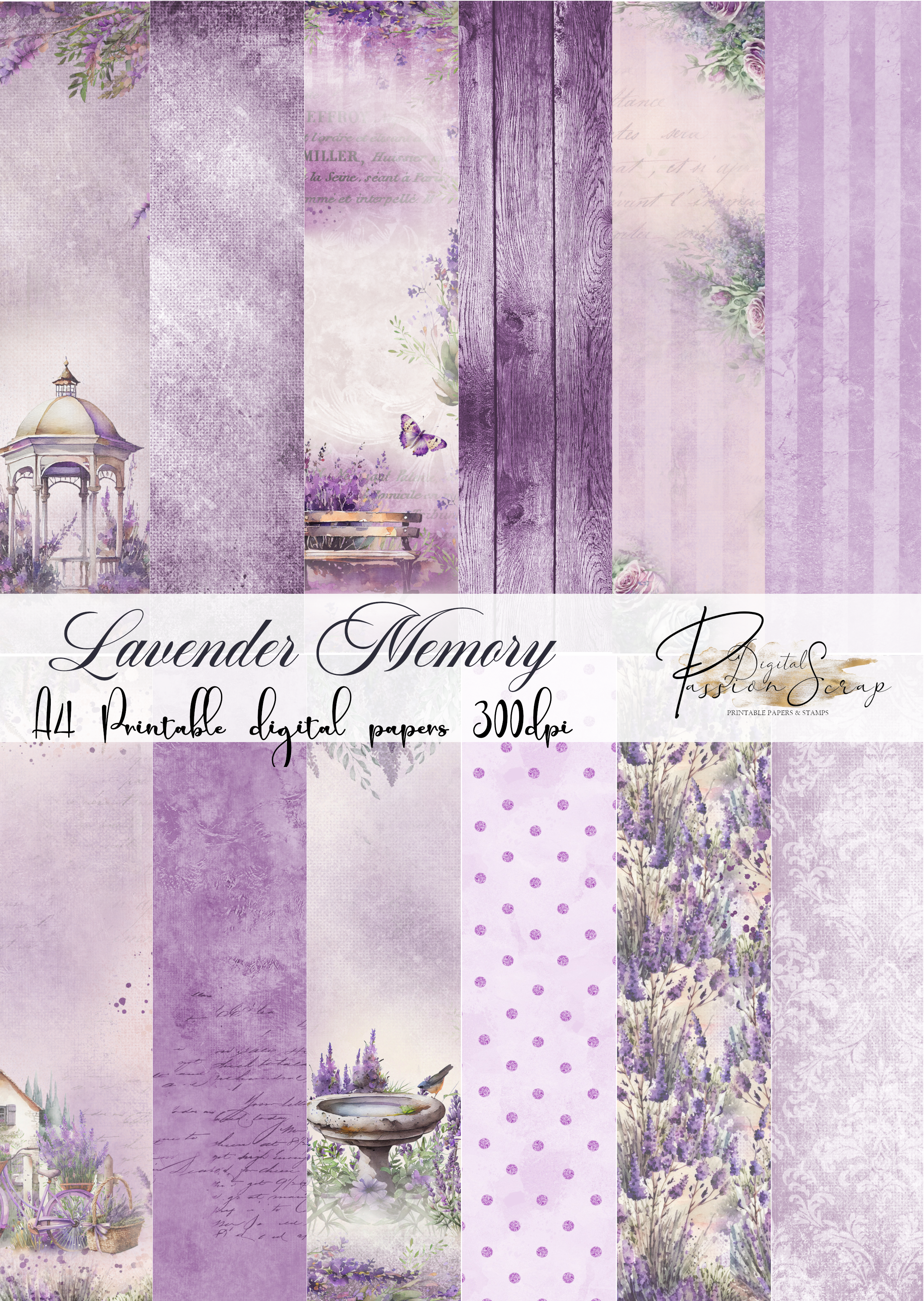 Lavender Memory - 12 osobnych digi papierów PNG w formacie A4 do samodzielnego wydruku w jakości 300 DPI