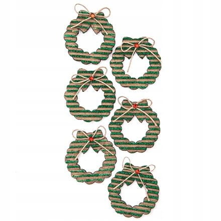 Naklejki craft 3D wykonane są z tektury falistej z dodatkiem zielonego brokatu, polecamy do zdobienia we wszelkich, świątecznych projektach. Motyw wianków doskonale się sprawdzi w scrapbookingu, cardmakingu, mixed mediach i oczywiście pracach home decor. Opakowanie zawiera 6 sztuk. Wymiar ok. 40mm