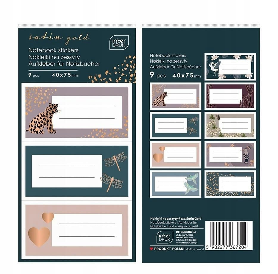 NAKLEJKI NA ZESZYTY 9SZT. SATIN GOLD