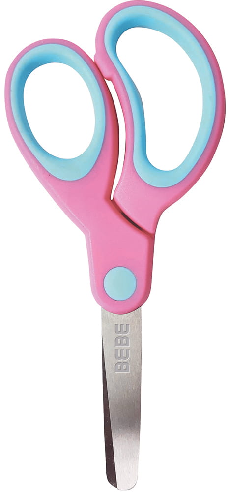 Nożyczki posiadają zaokrąglone końcówki ostrza, oraz gumowy uchwyt, zapewniając bezpieczne użytkowanie.