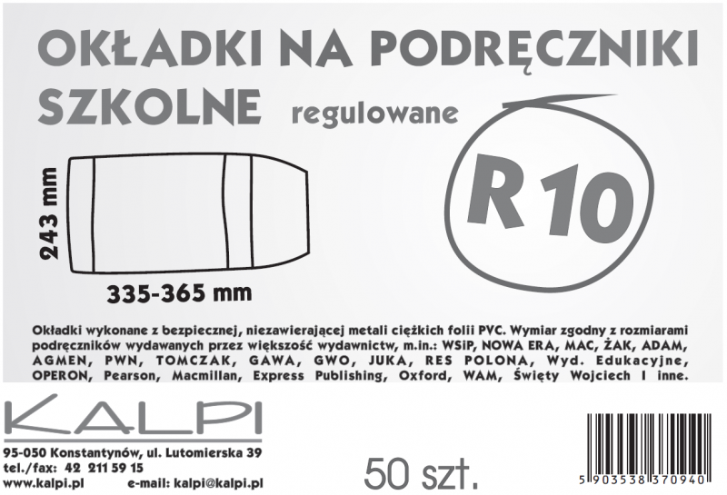 OKŁADKA REGULOWANA NA PODRĘCZNIK R10 24,3x36,5CM