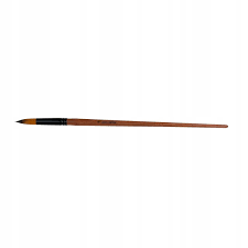 pędzel do malowania farbami akrylowymi, olejnymi i temperami pokryta czarną farbą aluminiowa skuwka utrzymuje miodowo–czarne włosie na wygodnie wyprofilowanym długim, lakierowanym trzonku z naturalnego drewna o szlachetnym kolorze mahoniu elastyczne, miękkie włosie dobrze chłonie medium i precyzyjnie przenosi pigment na papier, płótno oraz inne struktury nie pozostawiając przy tym śladów pociągnięć pędzla