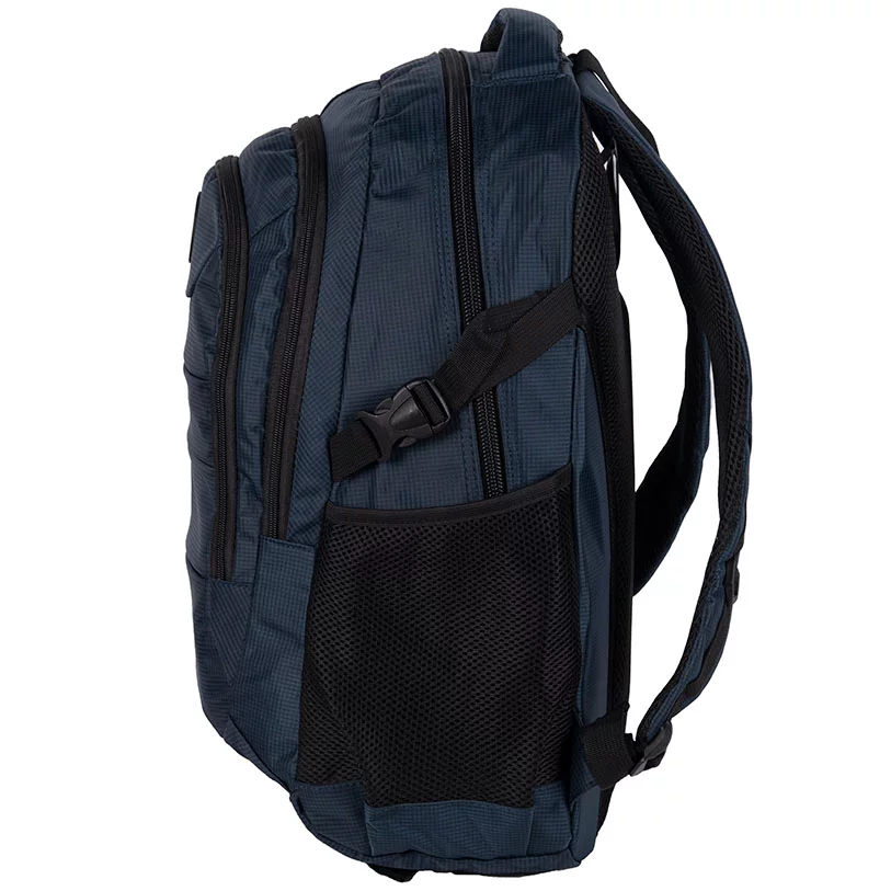 Plecak młodzieżowy Active. Idealnie nadaje się do szkoły, na wycieczki czy wyjazdy weekendowe. Wyposażony jest w dwie duże komory, jedną obszerną kieszeń przednią, na której znajduje się płaska kieszonka doskonała do przechowania telefonu, portfela, kluczy czy innych drobiazgów. Komora główna z kieszenią na laptop zamykana na zamek dwukierunkowy. Komora mniejsza wyposażona w organizer. Plecy oraz szelki modelu zostały mocno usztywnione oraz pokryte siatką podnoszącą komfort noszenia. Plecak posiada dwa wygodne uchwyty do przenoszenia w dłoni lub zawieszenia. Boczne i dolne pasy ściągające zapewniają dodatkowe miejsce pakowe dla kurtki, karimaty lub innego wyposażenia. Dwie funkcjonalne kieszenie z siatki idealnie nadają się do przenoszenia butelki, bidonu lub termosu. Elementem zwiększającym atrakcyjność plecaka są wyraźne i grube zamki oraz ozdobne pullery ułatwiąjace zamykanie. Materiał poliester Rozmiar 50x33x22 Waga : 900g