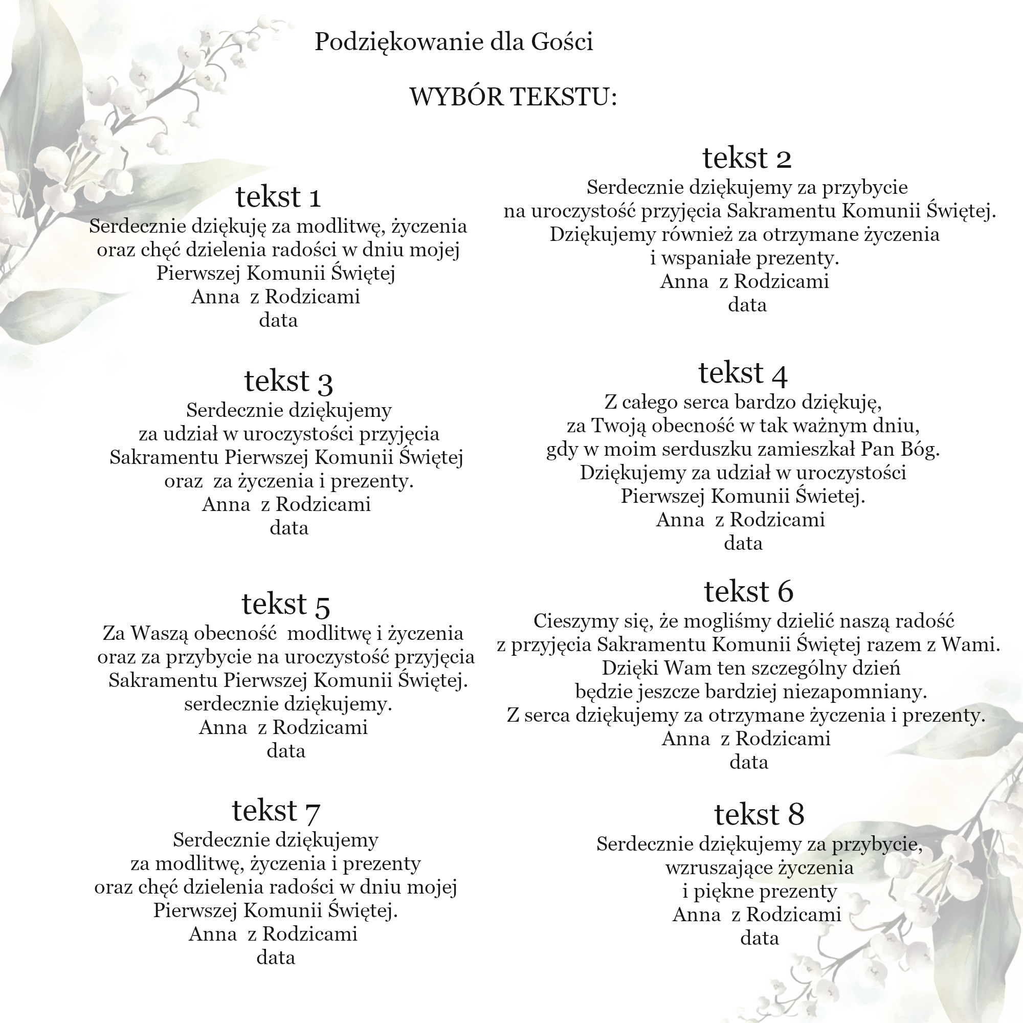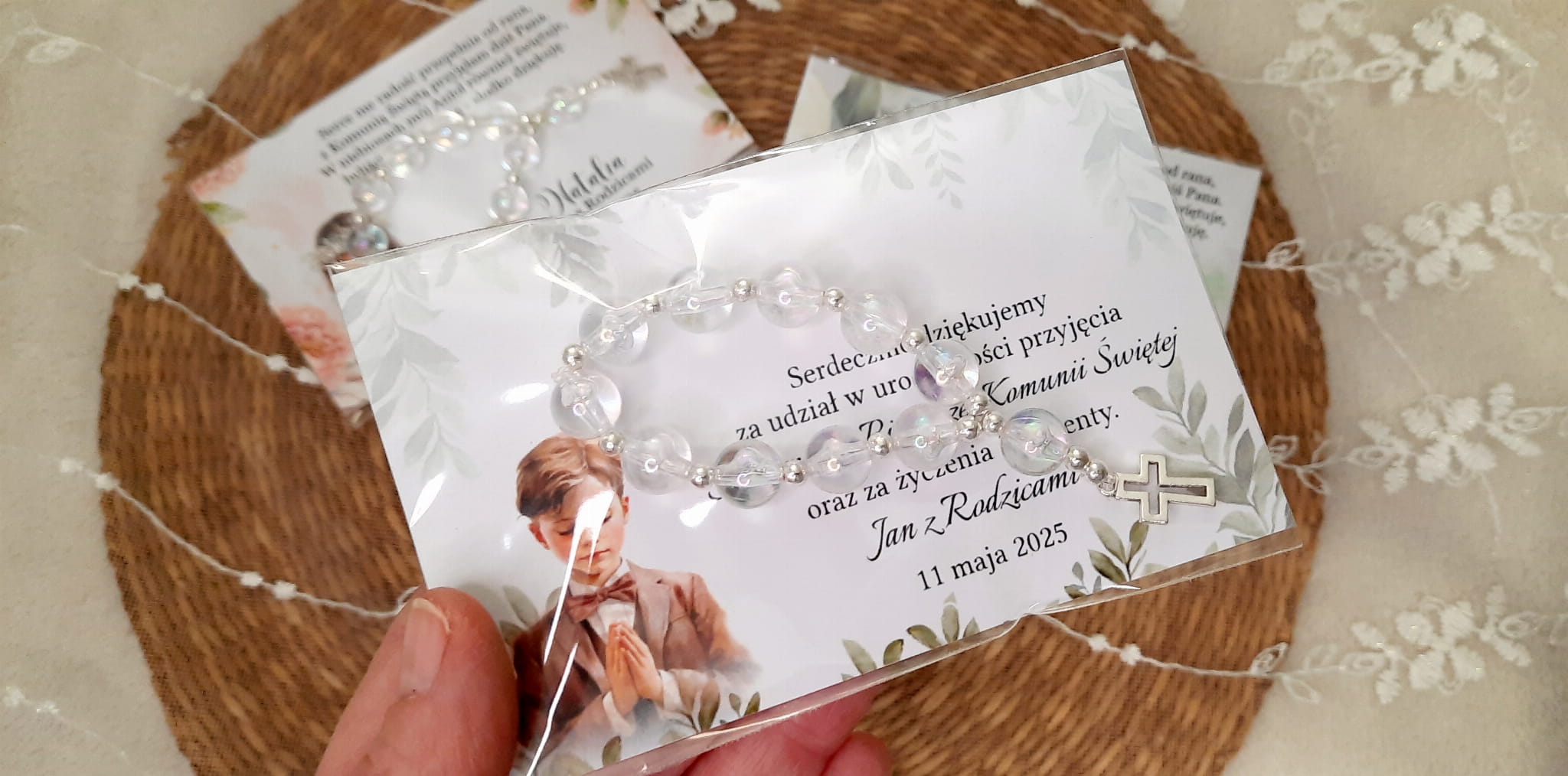 Podziękowanie dla gości w formie dziesiątki różańca.