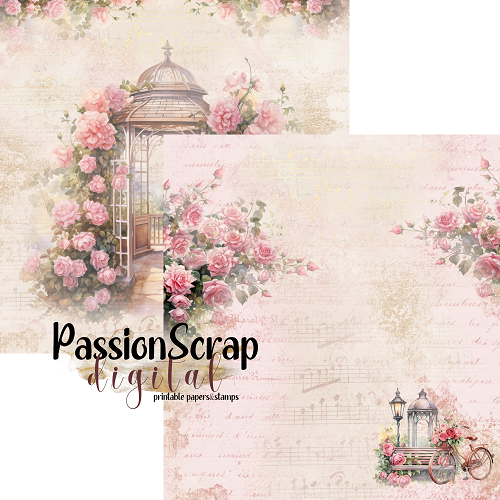 Rose Garden - 12 osobnych digi papierów PNG do samodzielnego wydruku w jakości 300 DPI