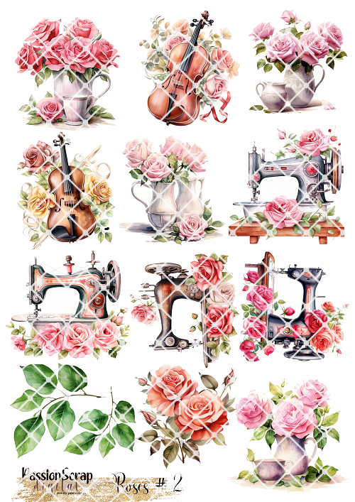 Roses#2 graphics - grafiki z elementami na białym tle na arkuszu A4 do samodzielnego wydruku lub stworzenia własnego oryginalnego projektu, grafiki stworzone za pomocą AI