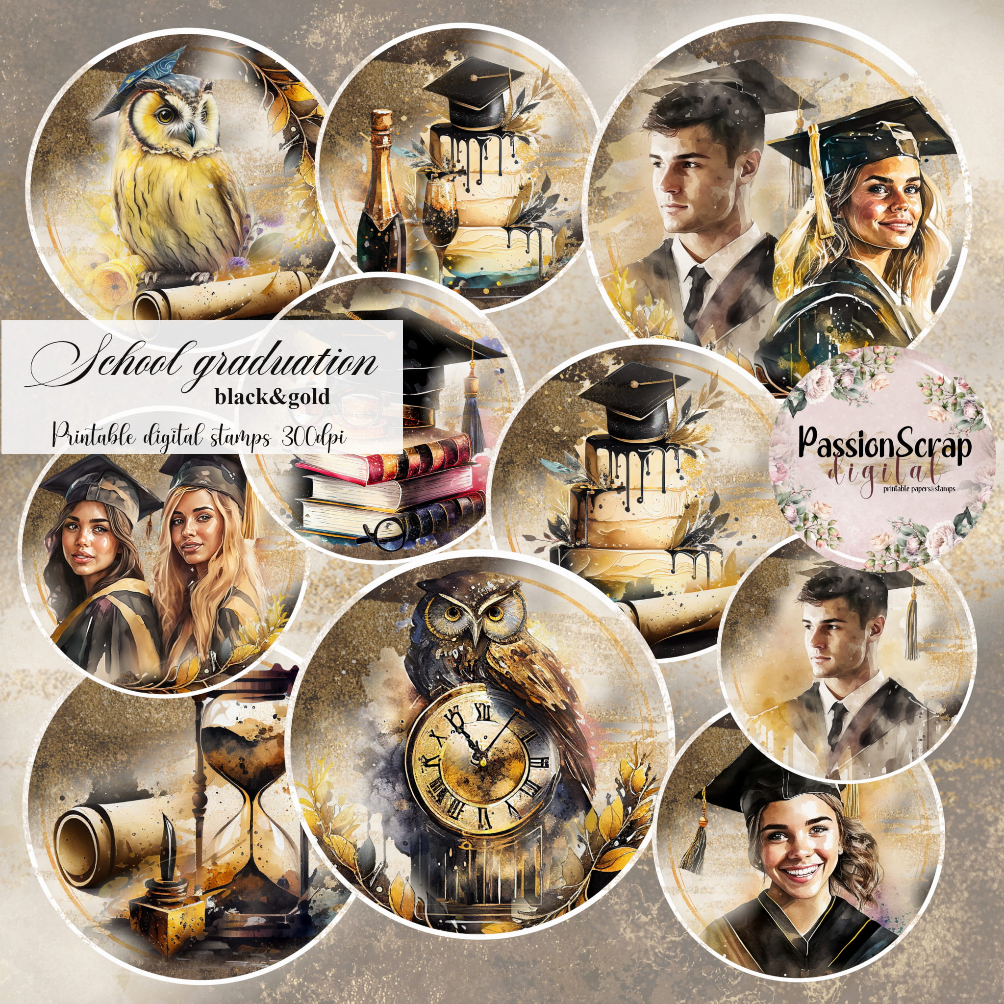 SCHOOL GRADUATION BLACK&GOLD DIGITAL STAMPS
