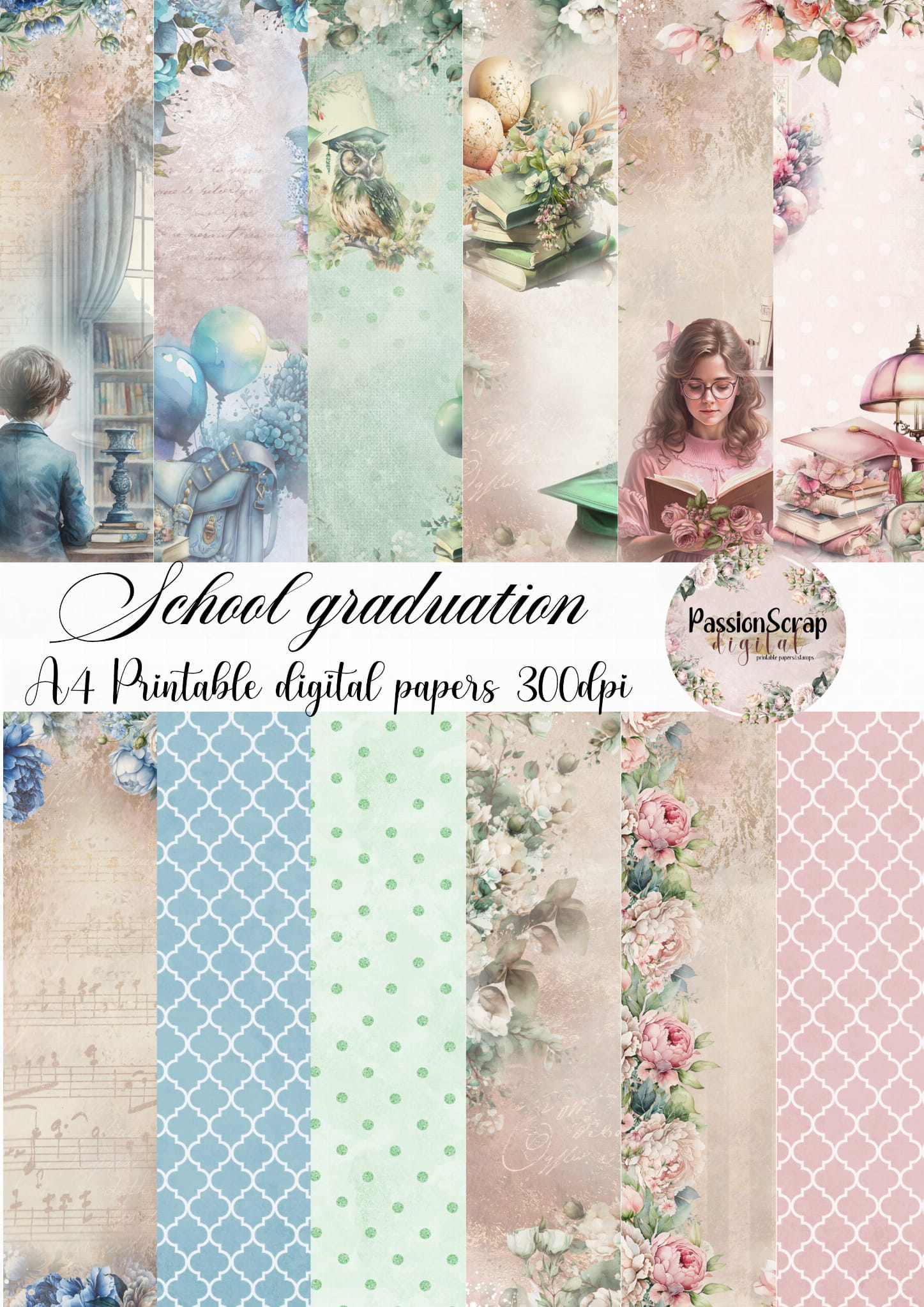 SCHOOL GRADUATION DIGITAL PAPERS A4