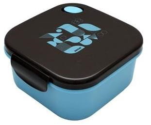 Zestaw śniadaniowy wykonany z wysokiej jakości plastiku - dolna część niebieska, a wieczko w beżowym kolorze i ozdobione motywem pasującym do koloru dolnej części. Wyposażony w dwa mocne zatrzaski, bez przedziałki. Może być również używany do przechowywania drobnych przedmiotów. Nie nadaje się do użytku w kuchence mikrofalowej ani do mycia w zmywarce. Wymiary: 161x161 mm
