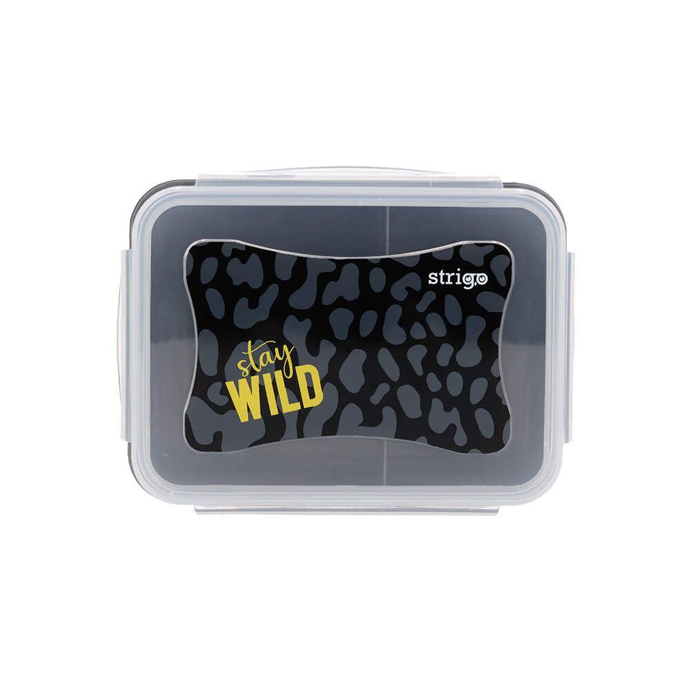 Funkcjonalna śniadaniówka STRIGO Strigo Stay Wild w kolorze czarnym. Ten praktyczny lunchbox na jedzenie zapewni Ci stylową i wygodną i bezpieczną podróż z przygotowanymi posiłkami i przekąskami. Śniadaniówka STRIGO Strigo Stay Wild została wykonana z wysokiej jakości materiałów, aby zapewnić trwałość i odporność na codzienne użytkowanie. Wyposażona w przegródkę pozwala na podzielenie posiłków oraz utrzymuje świeżość przez dłuższy czas. Jest świetnym towarzyszem podczas podróży, w pracy lub w szkole. Pojemność śniadaniówki STRIGO Strigo Stay Wild pozwoli Ci na przechowywanie nie tylko kanapek czy owoców, ale również sałatek, jogurtów czy przekąsek. Dodatkowo, jej wymiary pozwola Ci łatwo pomieścić ją w torbie czy plecaku, bez zajmowania zbyt dużo miejsca. Niech Twoje śniadania będą pełne stylu!