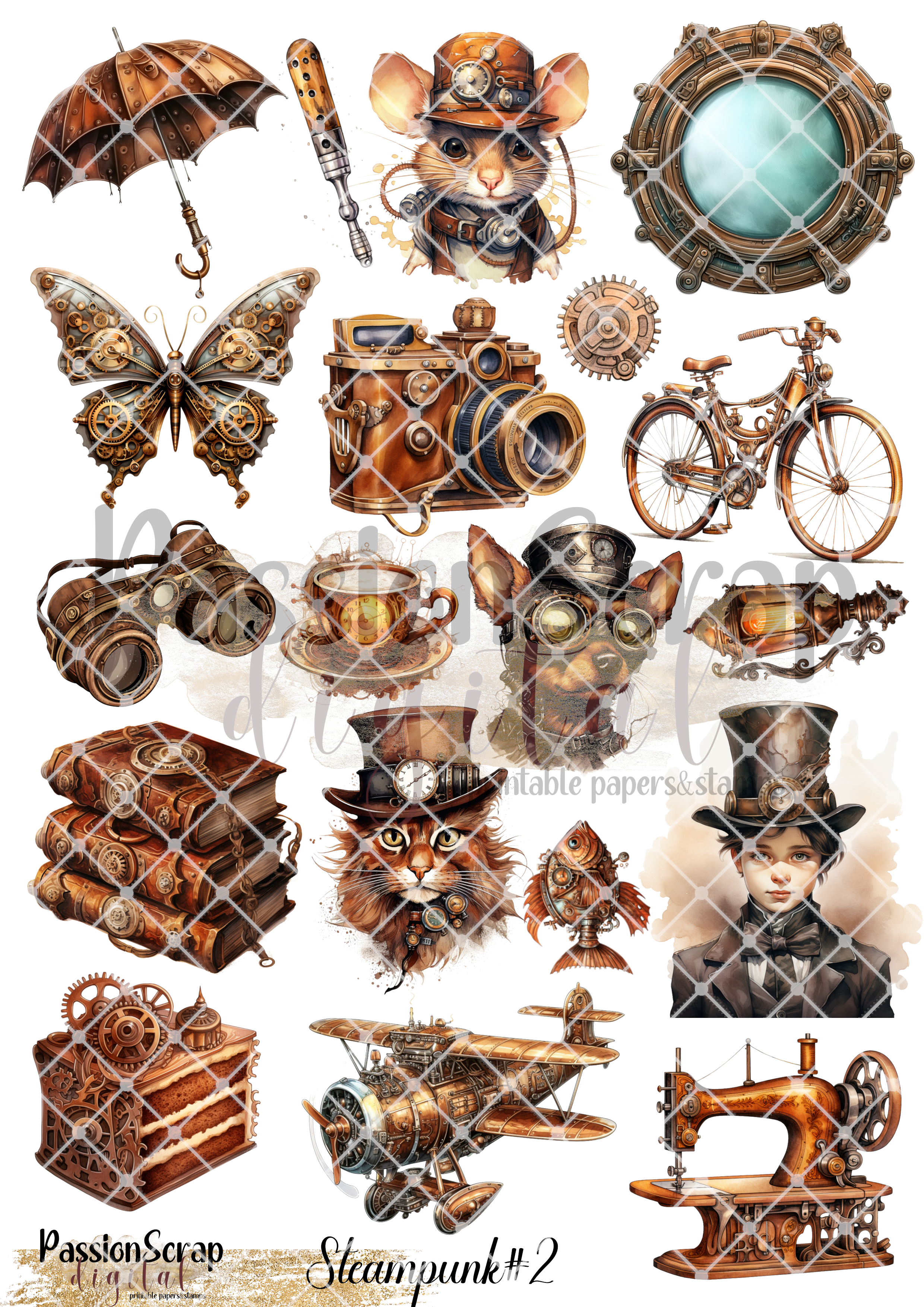 STEAMPUNK#2 GRAPHICS PRINTABLE DIGITAL A4