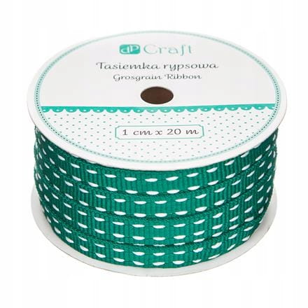 Wysokiej jakości tasiemka rypsowa w kropki, aż 20 metrów na szpuli! Idealna do wszelkich projektów typu cardmaking, scrapbooking, home decor, pakowanie prezentów czy jako dodatek pasmanteryjny. Estetycznie zapakowana, zawinięta na szpuli, co ułatwia przechowywanie i daje pewność, że tasiemka nie zaplącze się. Wymiary: szerokość 1 cm, długość 20 m Ilość w opakowaniu: 1 rolka Kolor: świąteczna zieleń z białymi przeszyciami