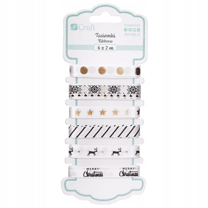Wysokiej jakości tasiemki ozdobne, 6 wzorów, każdy 2 metry długości! Szerokość tasiemek to 10 mm. Idealne do wszelkich projektów typu home decor, pakowanie prezentów, scrapbooking, cardmaking a także jako dodatek do ozdób do włosów i wielu innych. Ilość w opakowaniu: 6 wzorów po 1 sztuce Kolorystyka: biały, szary, srebrny, złoty.