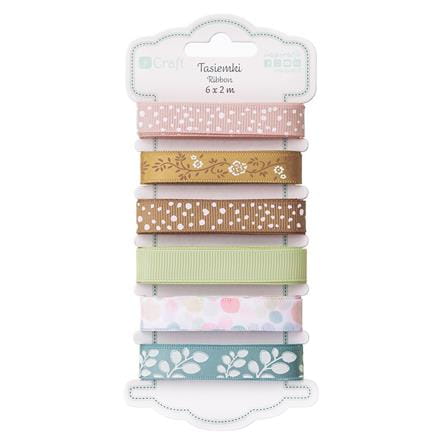 Przenieś się w magiczny świat natury dzięki tasiemkom z leśnej kolekcji Magical Forest. Rypsowe i satynowe tasiemki w odcieniach brązu, musztardy, pastelowej zieleni i brzoskwiniowym, z delikatnym printem roślinnym, motywami cętek i pastelowych kółek. Idealnie sprawdzą się w pracach z motywem lasu oraz projektach w stylu boho. Podkreślą charakter przyjęcia nawiązującego do przyrody, sprawdzą się jako dodatek do zaproszeń, księgi gości i kompozycji florystycznych. W opakowaniu: 6 x 2 m Kolorystyka: zielony, oliwkowy, brzoskwiniowy, camel, miodowy, biały