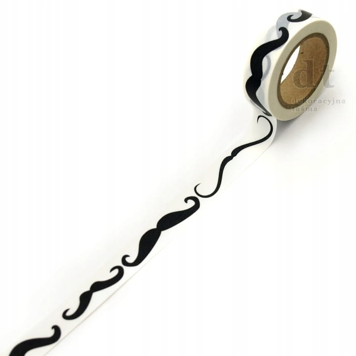 TAŚMA DEKORACYJNA WASHI CZARNE WĄSY 15MMX10M
