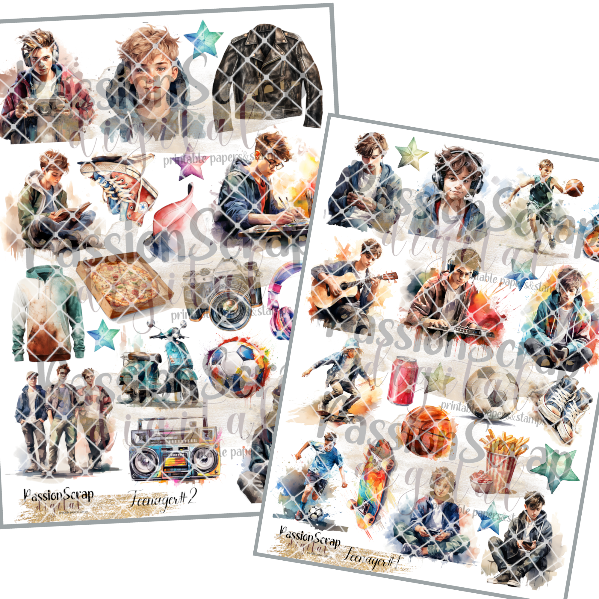 TEENAGER GRAPHICS PRINTABLE DIGITAL A4 ZESTAW