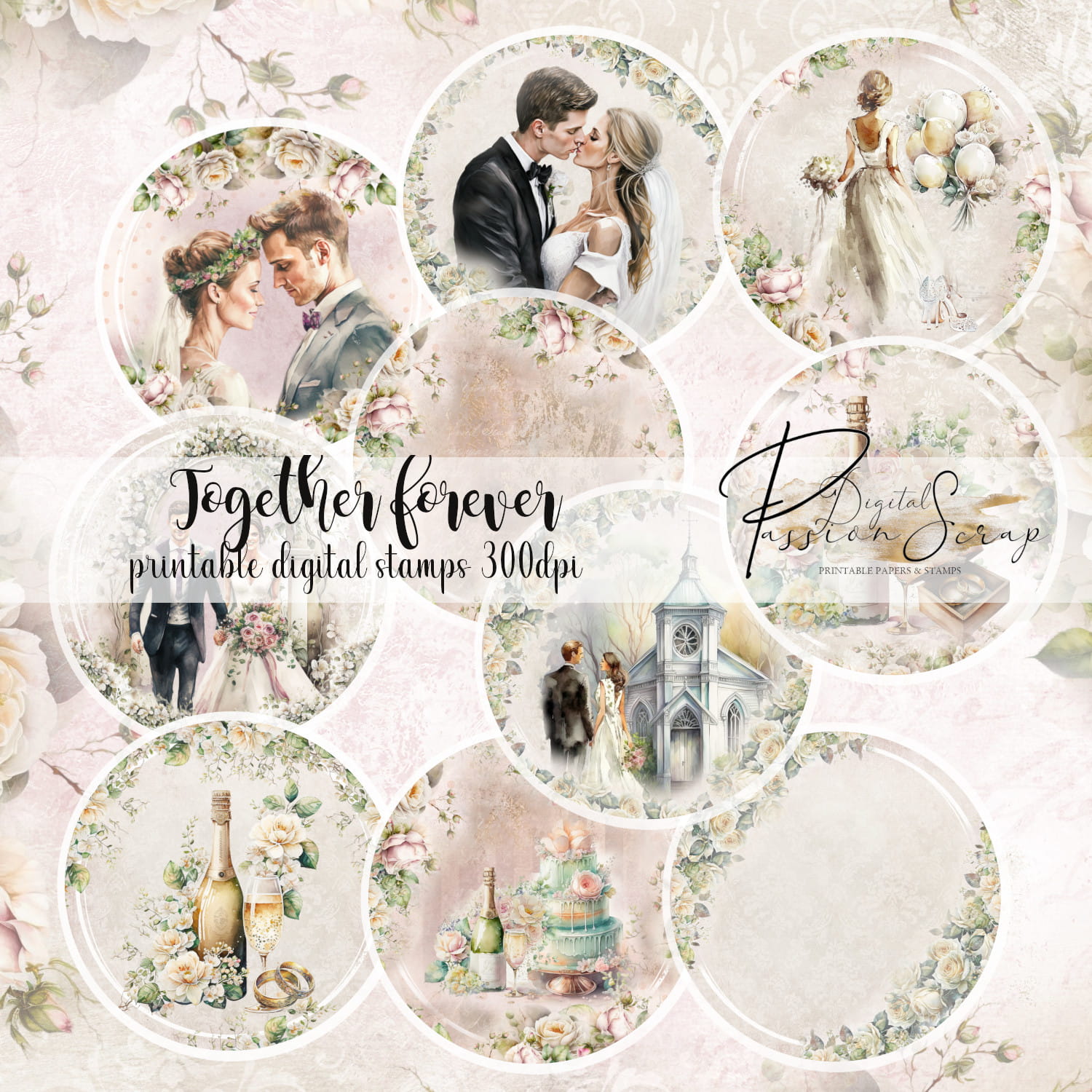 Together Forever - 12 osobnych digi papierów PNG i 10 osobnych digi stempli do samodzielnego wydruku w jakości 300 DPI