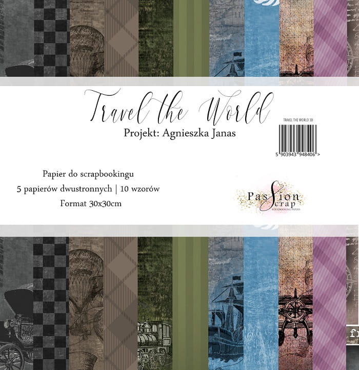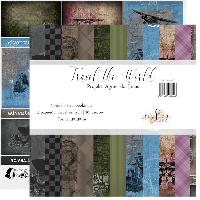 TRAVEL THE WORLD ZESTAW PAPIERÓW DO SCRAPBOOKINGU 30X30CM