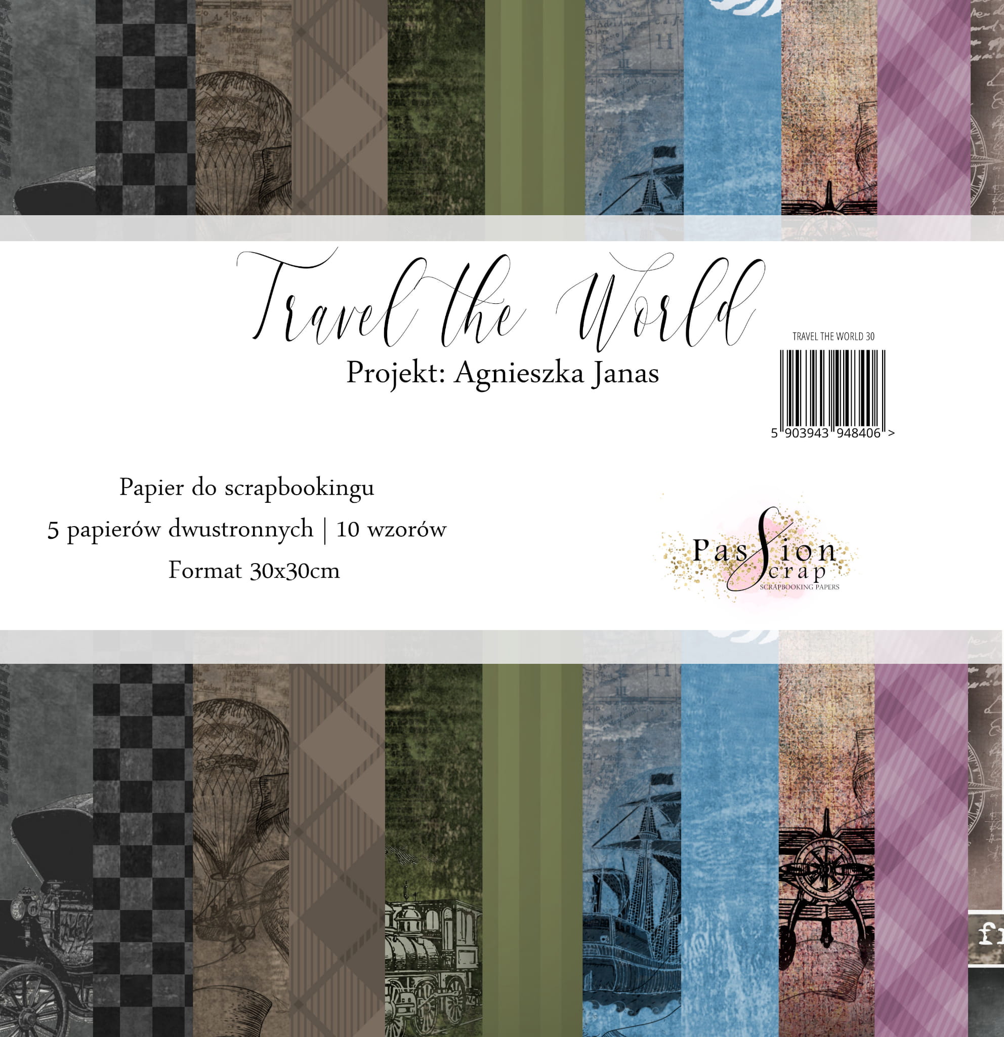 TRAVEL THE WORLD ZESTAW PAPIERÓW DO SCRAPBOOKINGU 30X30CM 10 ARKUSZY