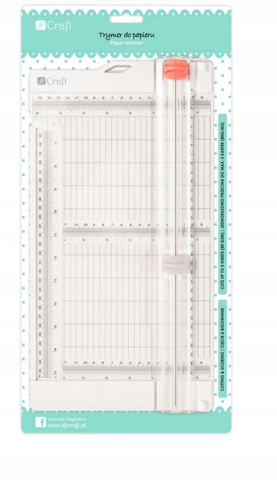 Trymer do papieru (15,2 cm x 30,5 cm) Trymer do papieru to niezawodny partner w scrapbookingu oraz we wszelkiego rodzaju pracach artystycznych. Cięcie i bigowanie papieru nigdy wcześniej nie było tak łatwe. Urządzenie posiada dwie funkcje: cięcie proste w standardzie oraz zamiennie bigowanie przy zastosowaniu wymiennego wkładu do bigowania (JCTR-010). Gilotyna tnie papier w formacie A3 lub mniejszym i jest wyposażona w składaną podziałkę. Urządzenie posiada otwór do zawieszania, który oszczędza miejsce oraz ułatwia przechowywanie. Jednorazowo przecina do max. 5 kartek papieru o gramaturze 80g/m²