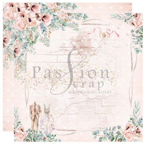 Dwustronny arkusz papieru do scrapbookingu 15x15cm - PassionScrap - Wedding Day 05 Bezkwasowe (acid-free) oraz bezdrzewne (lignin-free). Gramatura papieru - 250g. Wyprodukowane w Polsce. Wydruk w technologii offsetowej.