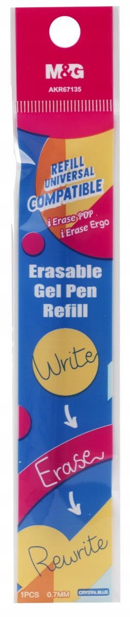 Wkład do długopisu wymazywalnego iErase Ergo, iErase Pop Unikalna formuła tuszu powoduje, że łatwo i czysto można wymazać i poprawić napisany tekst Grubość linii pisania: 0.7 mm (końcówka kulkowa) Kolor linii pisania: niebieski (crystal blue) Długość wkładu 11,2cm.