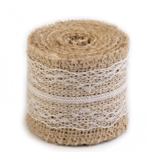 Jutowa wstążka ozdobiona pośrodku delikatną romantyczną koronką, która dodaje wstążce wyglądu vintage. Jutowa wstążka może być użyta do celów dekoracyjnych. Można z niej zrobić kokardy do bukietów kwiatowych, wieńców, ozdobienia świeczników czy do aranżacji stołu. Z jej pomocą stworzysz piękne dekoracje. Szerokość: 50 mm Nawój: 2 m