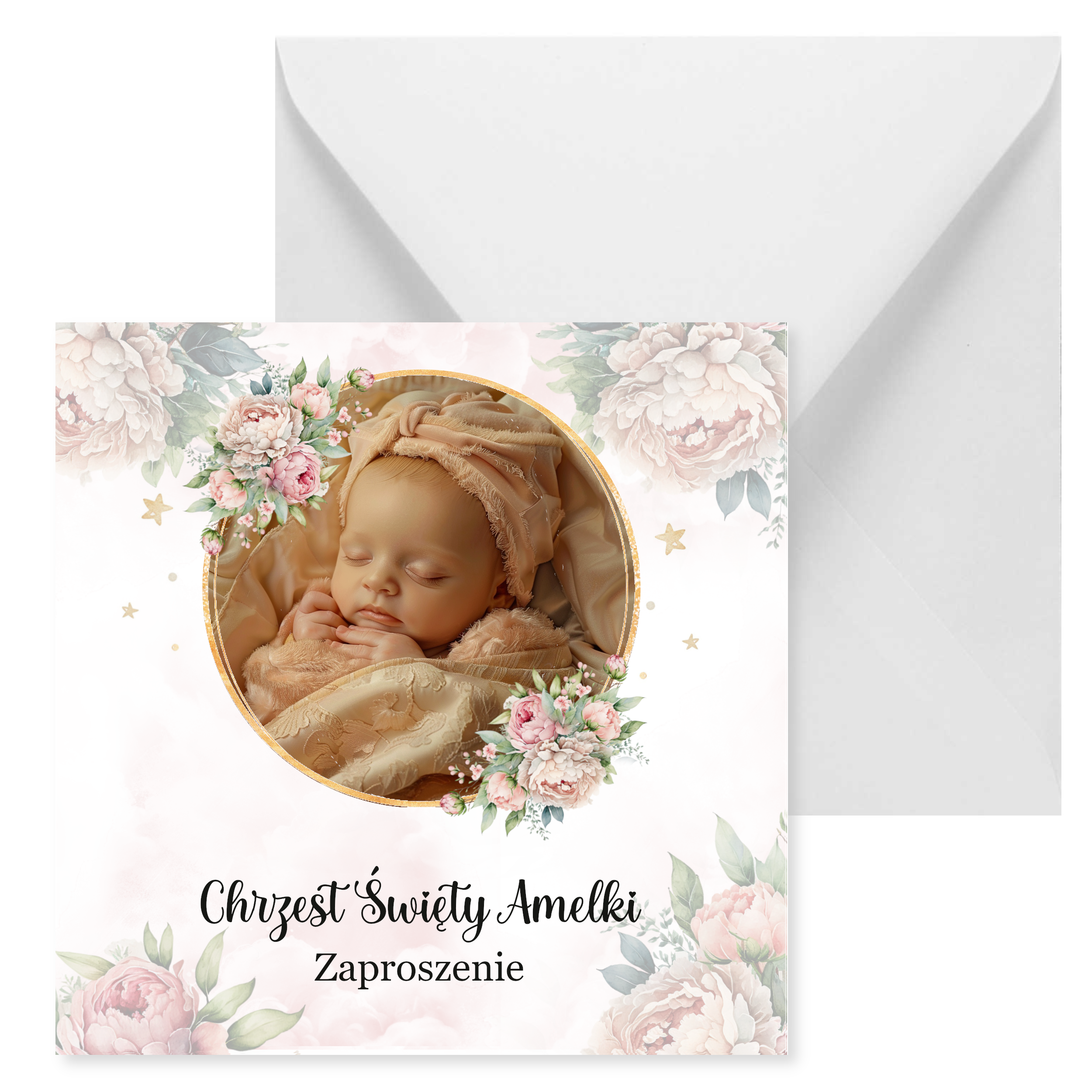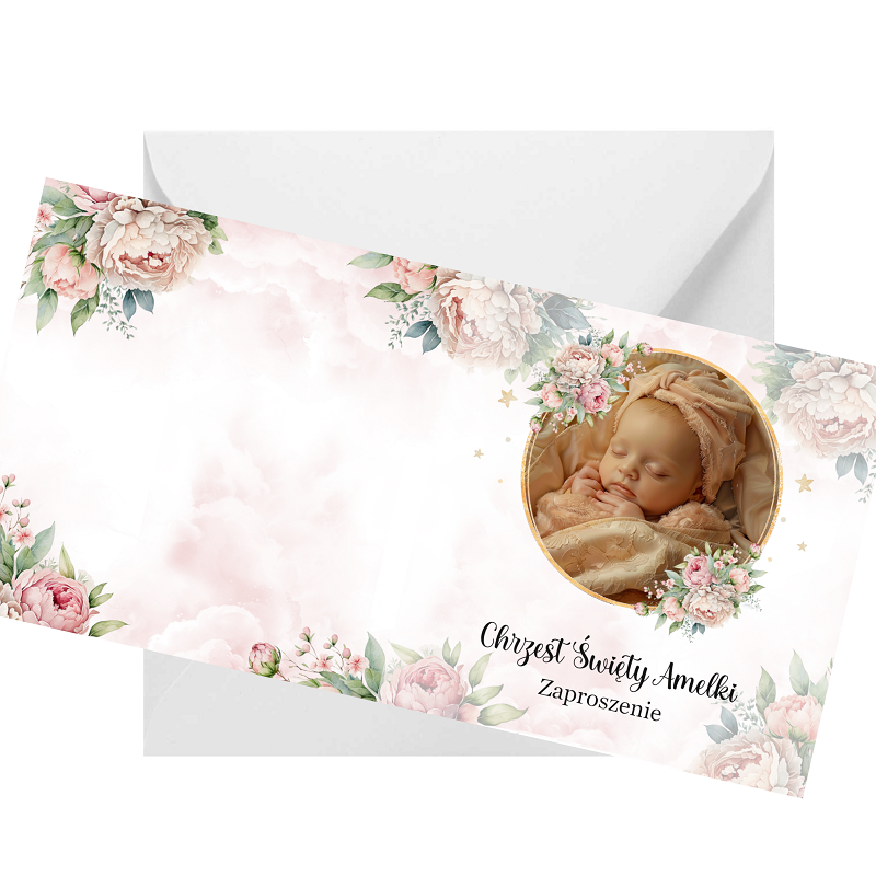 Zaproszenia na chrzest z autorską grafiką oraz zdjęciem