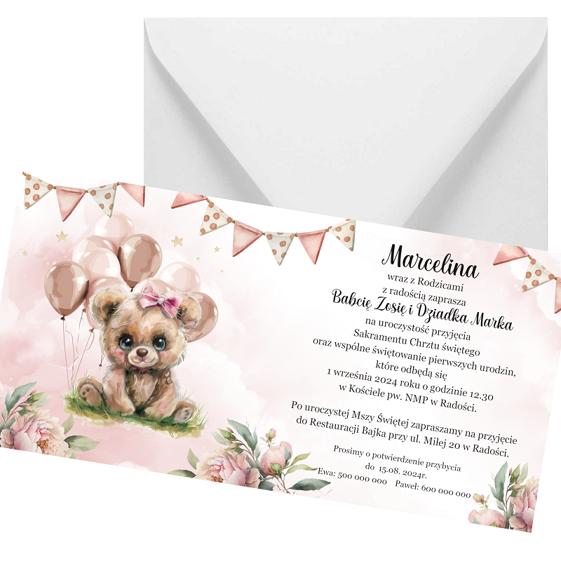 - datę potwierdzenia przybycia i numery telefonów (jeśli ma się pojawić w treści zaproszenia).
