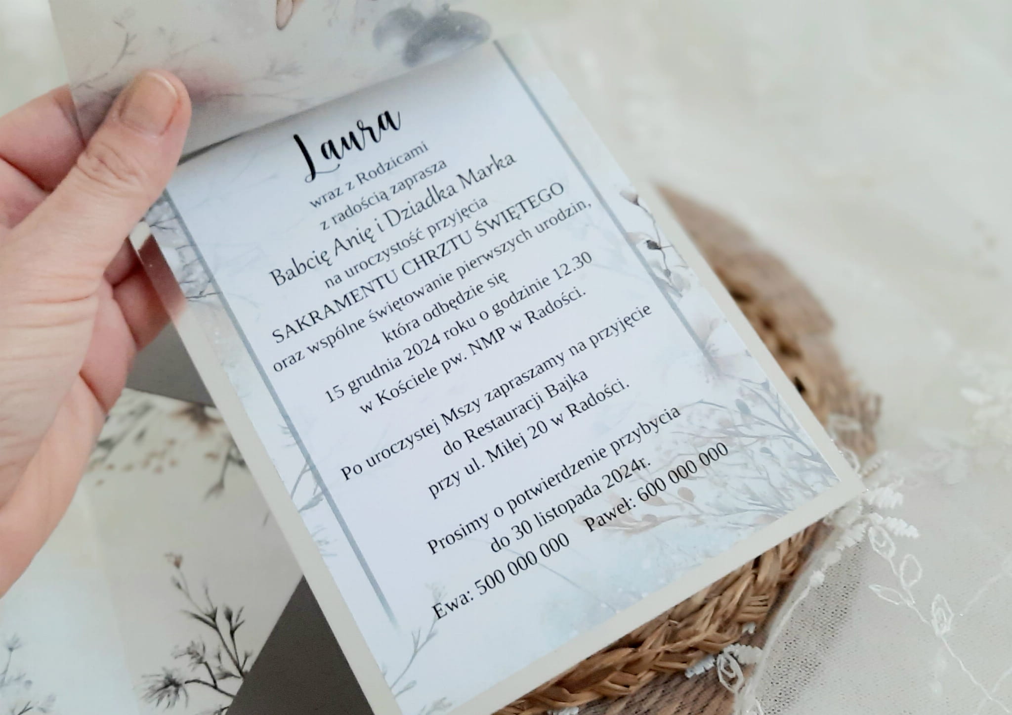 - datę potwierdzenia przybycia i numery telefonów (jeśli ma się pojawić w treści zaproszenia).