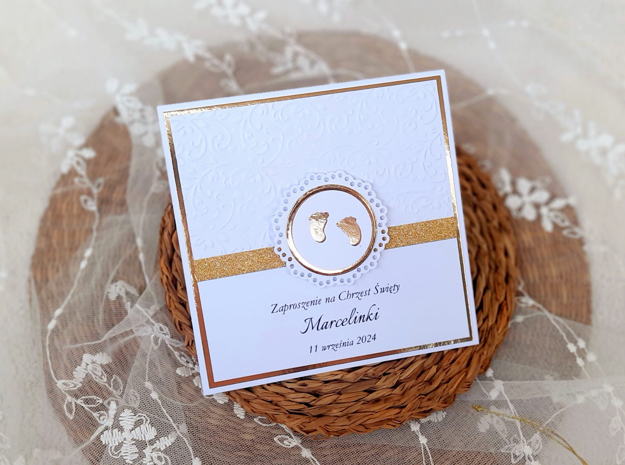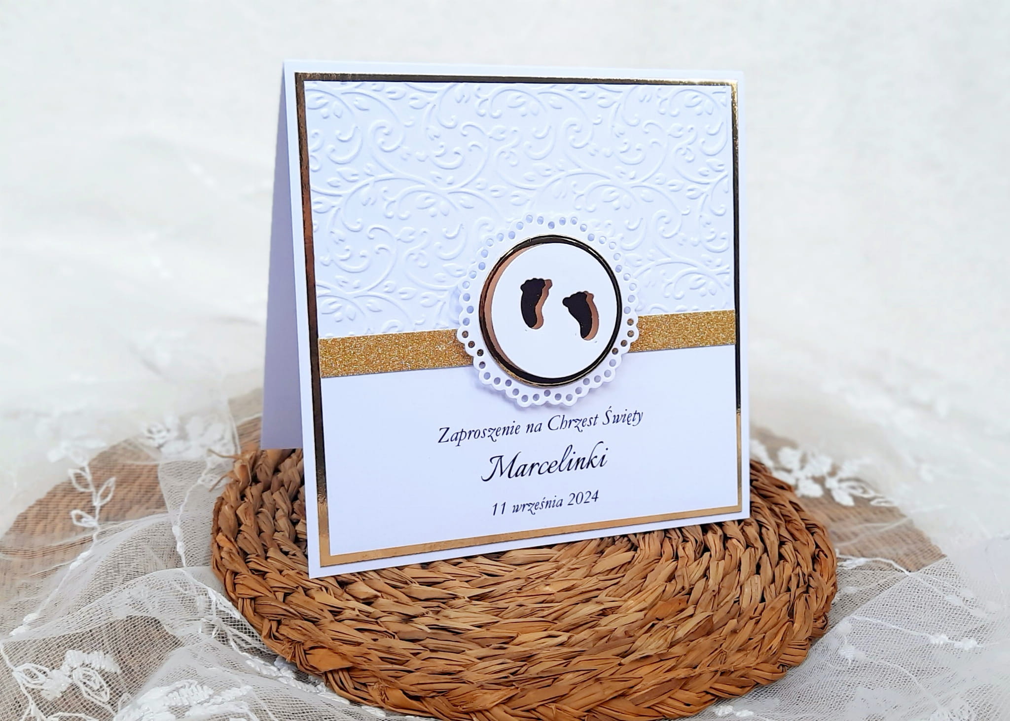 Zaproszenia wykonane z białego papieru satynowanego o gramaturze 250g,