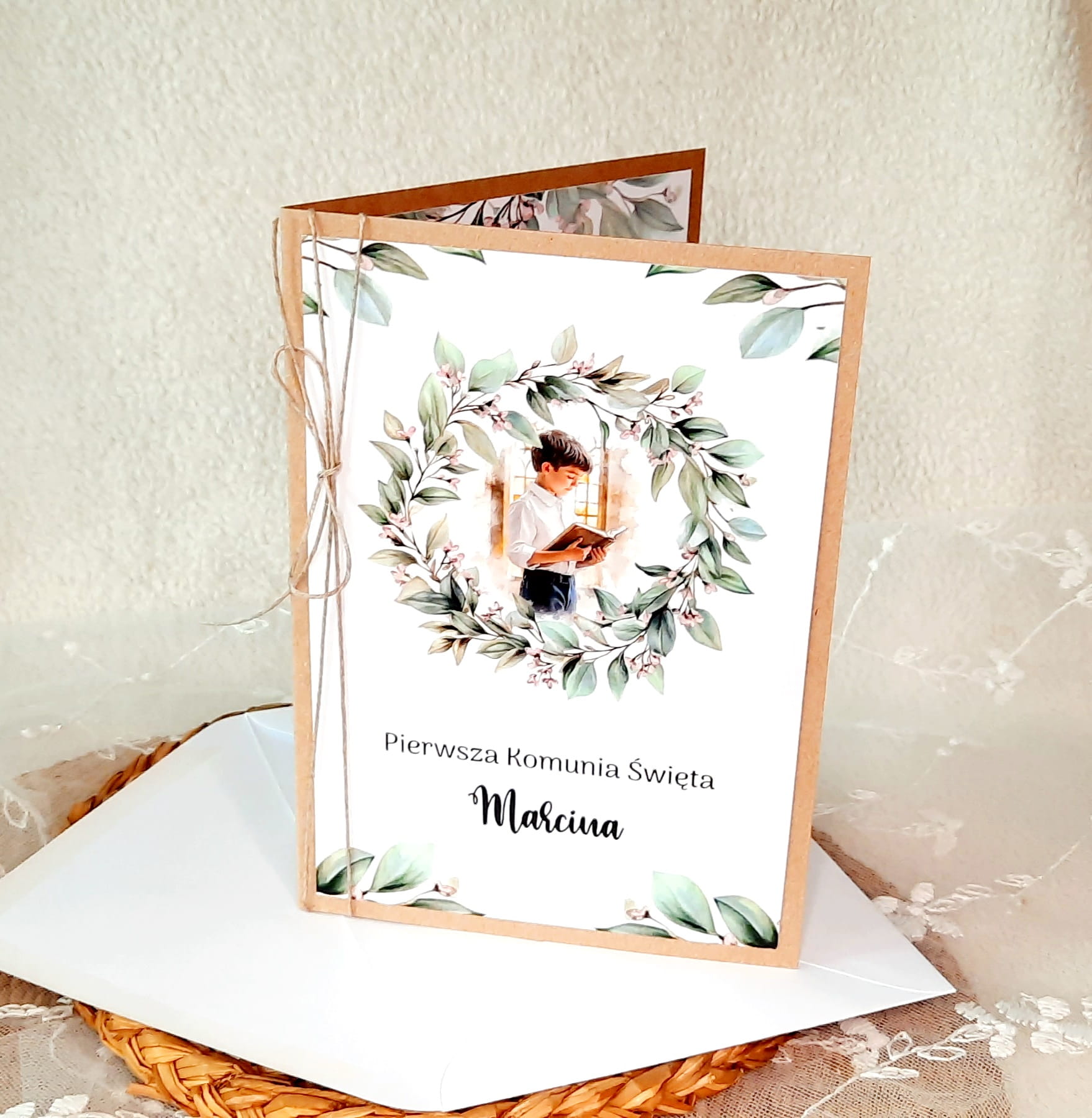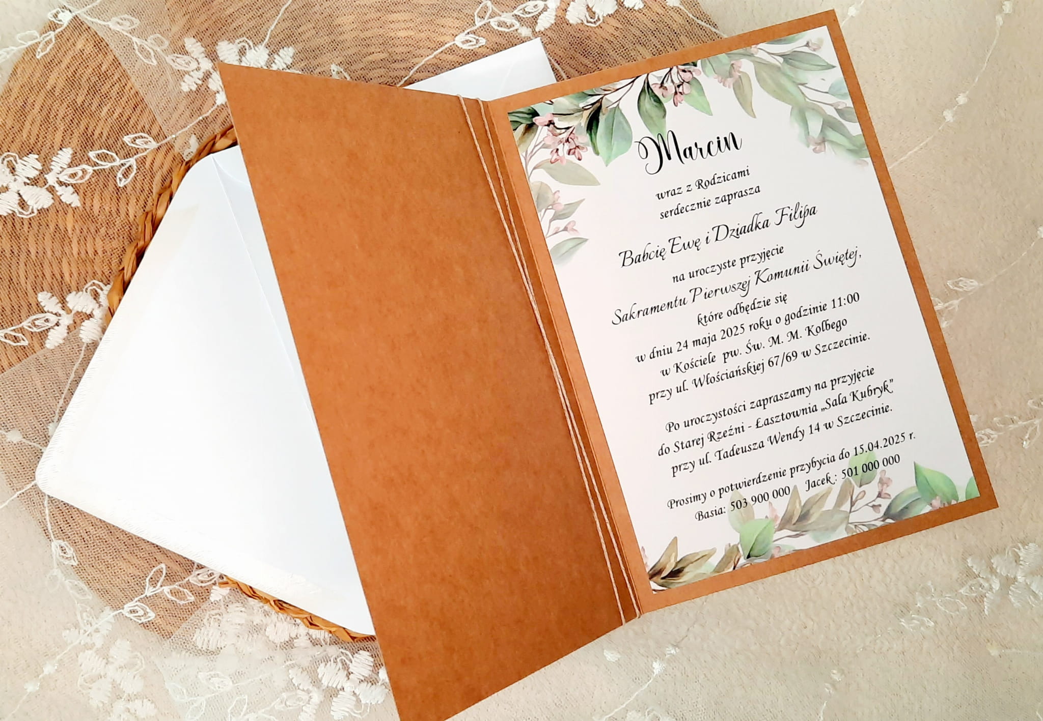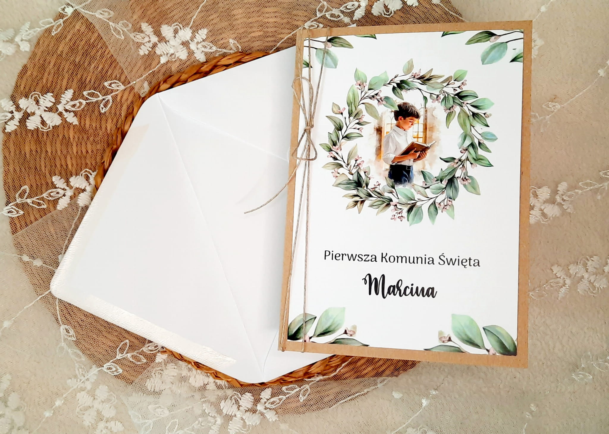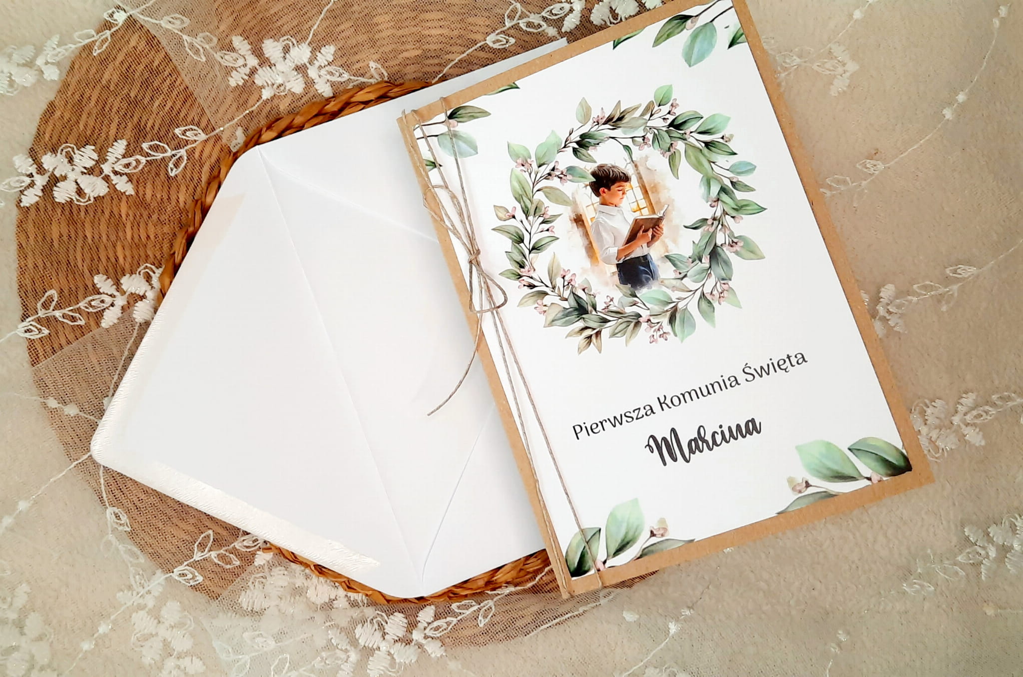 Zaproszenia na komunię z piękną grafiką na papierze eko.