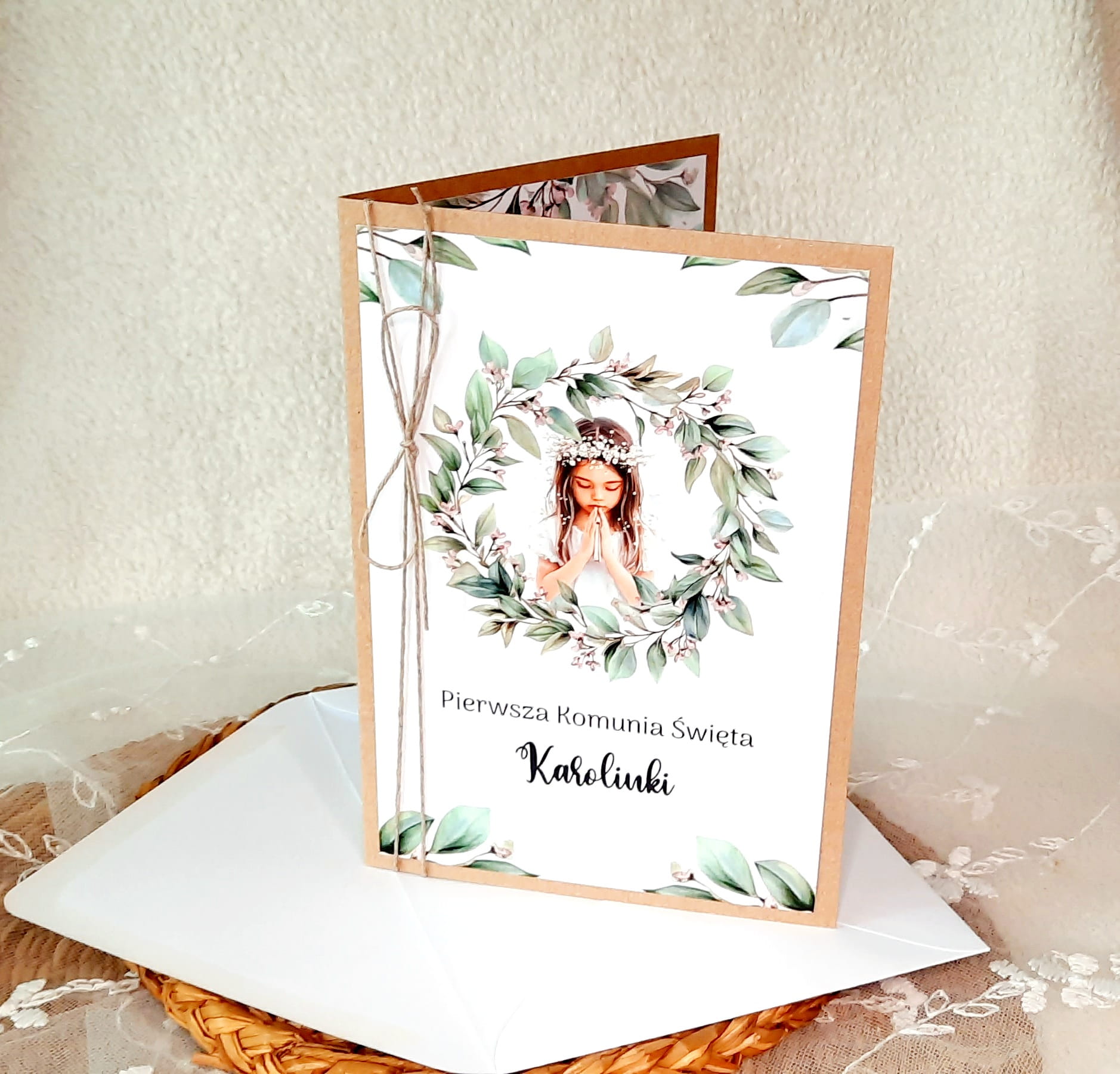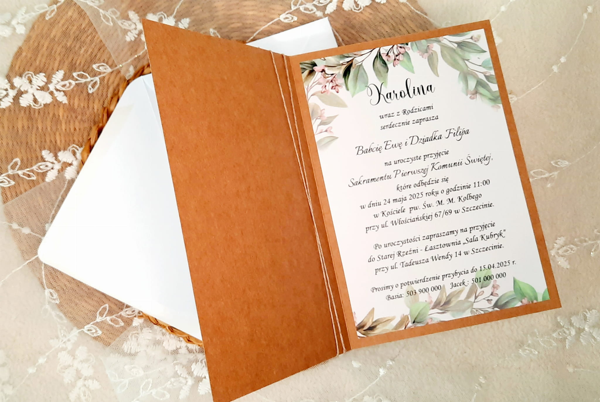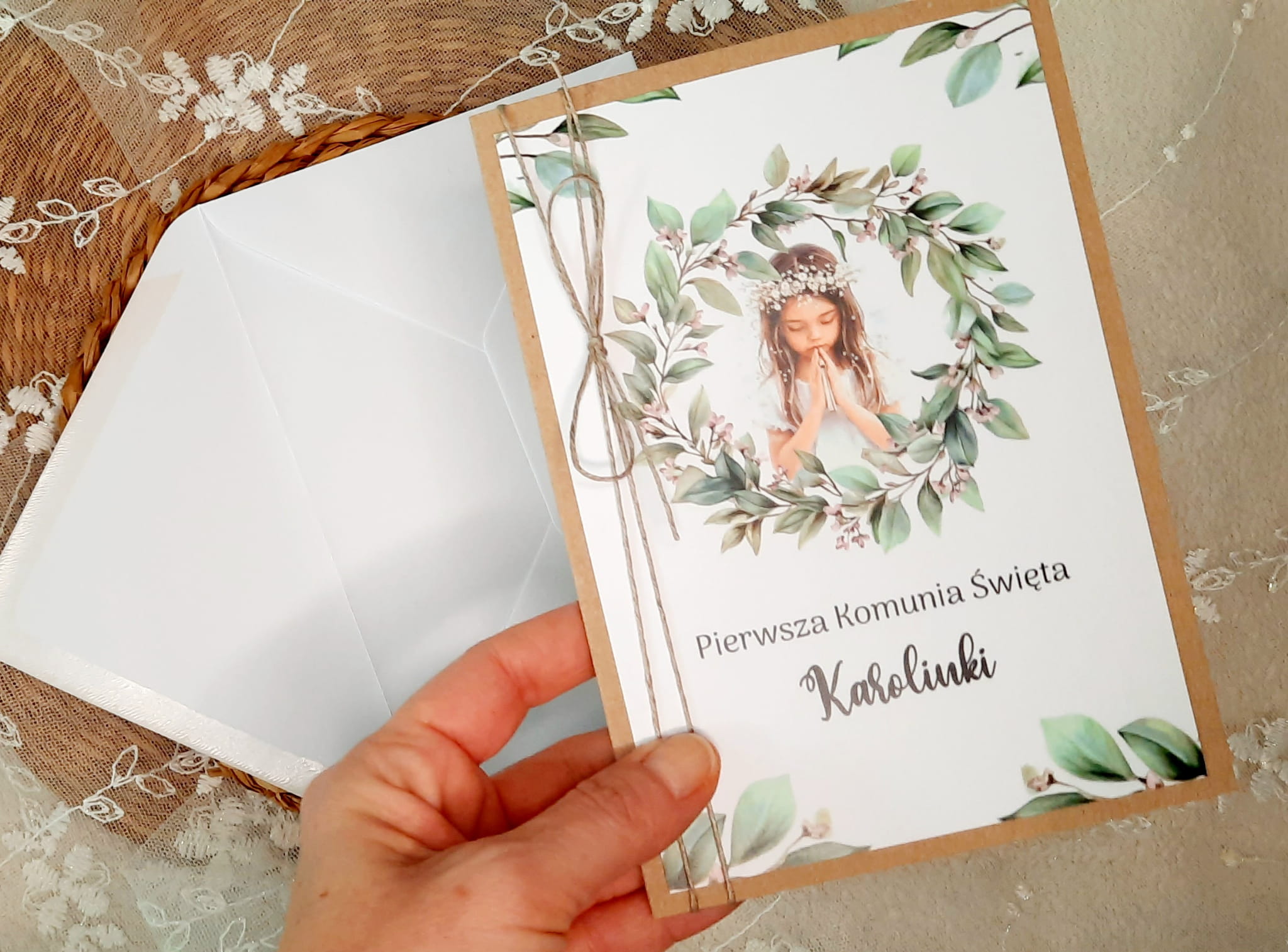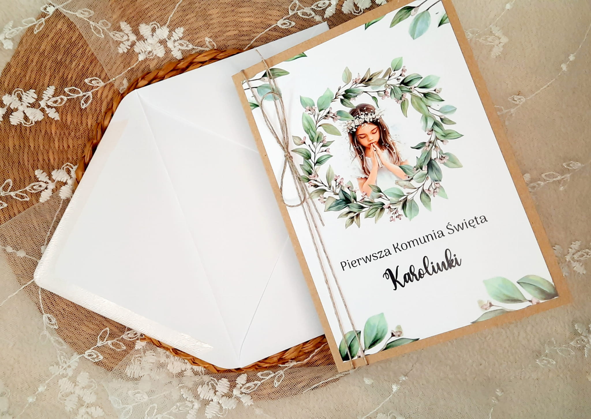 Zaproszenia na komunię z piękną grafiką na papierze eko.