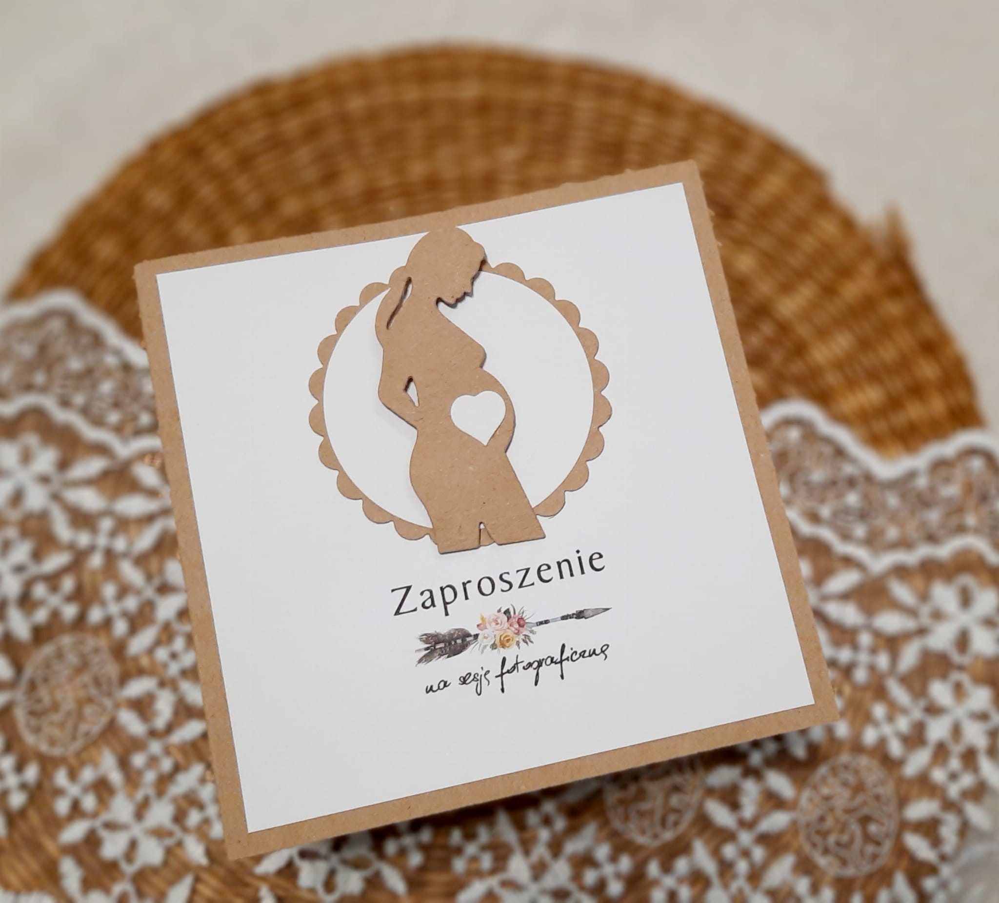 Zaproszenia na sesję na podkładzie eko z kobietą w ciąży.