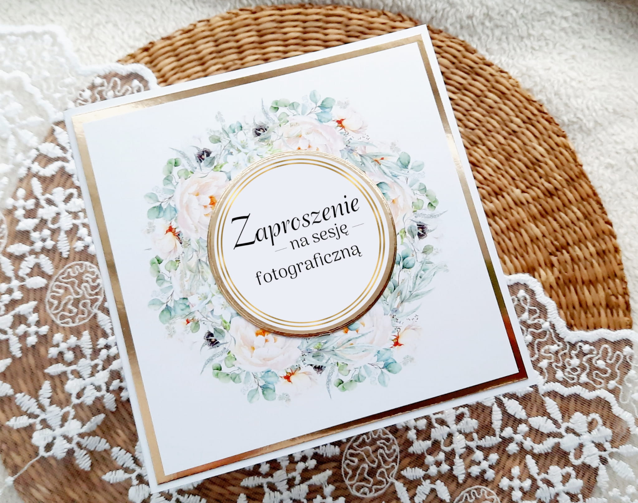 Zaproszenia na sesję - otwierane w bok. Format 14cm W komplecie z kopertą