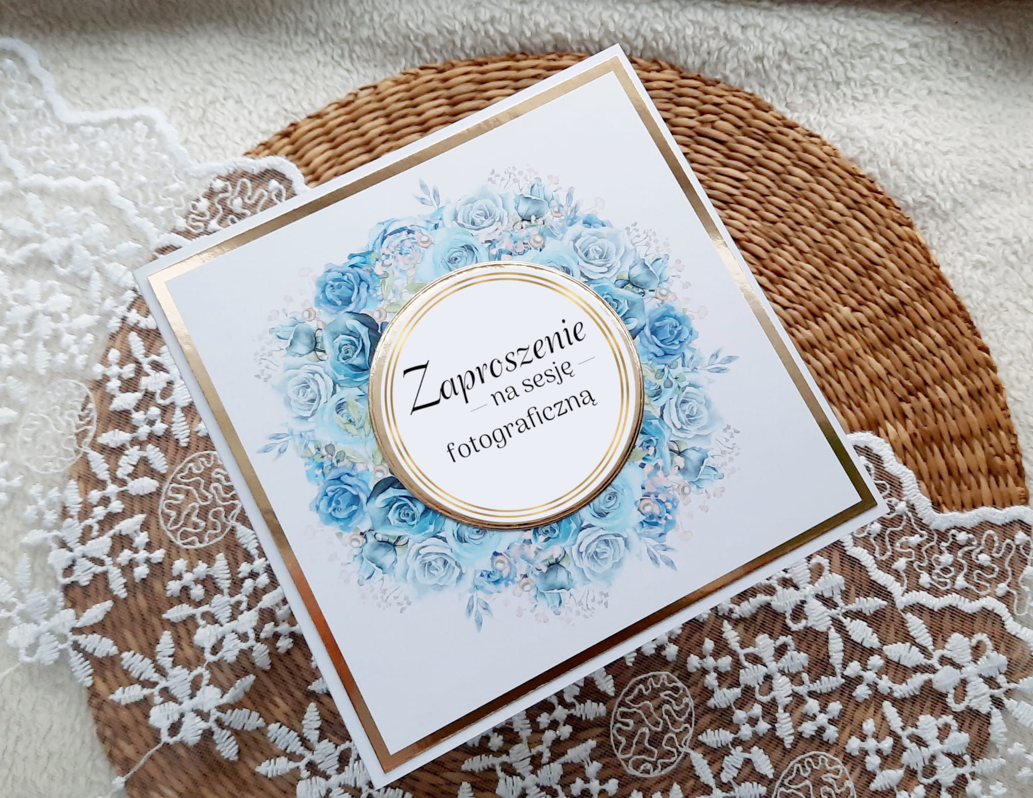 Zaproszenia na sesję - otwierane w bok. Format 14cm W komplecie z kopertą