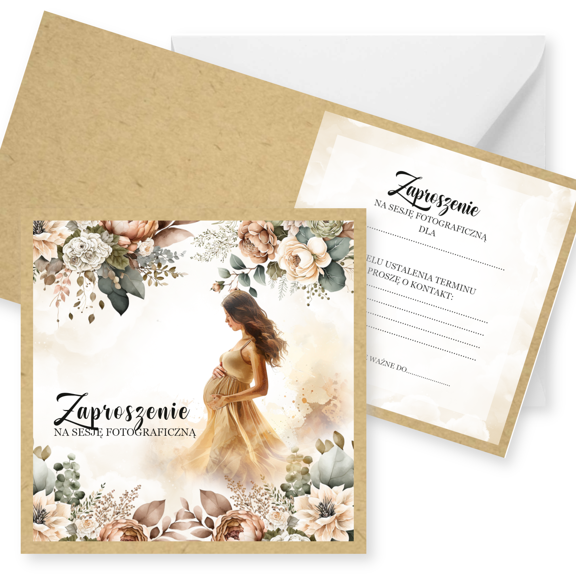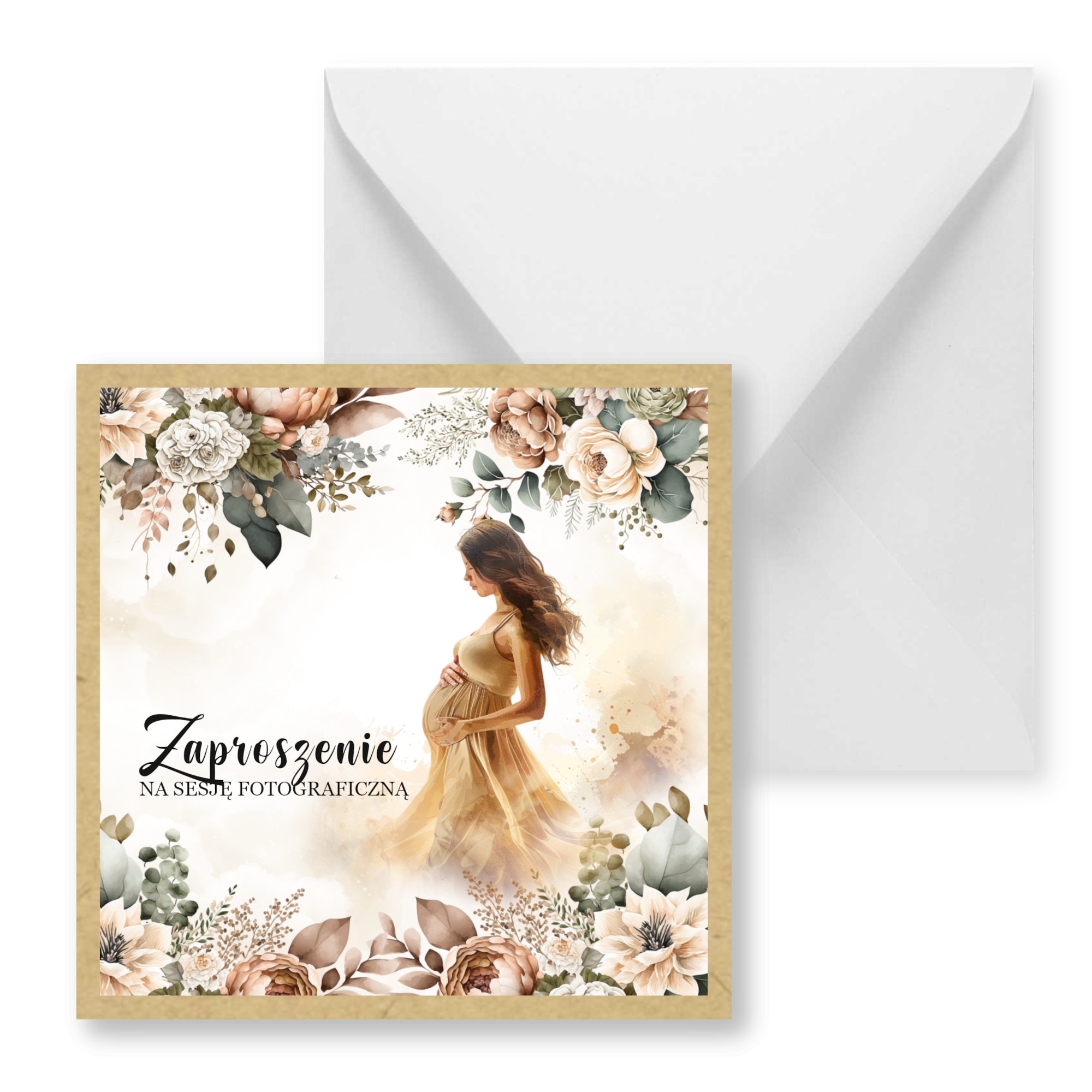 Zaproszenia na sesję na podkładzie eko z motywem graficznym. Format 14cm.