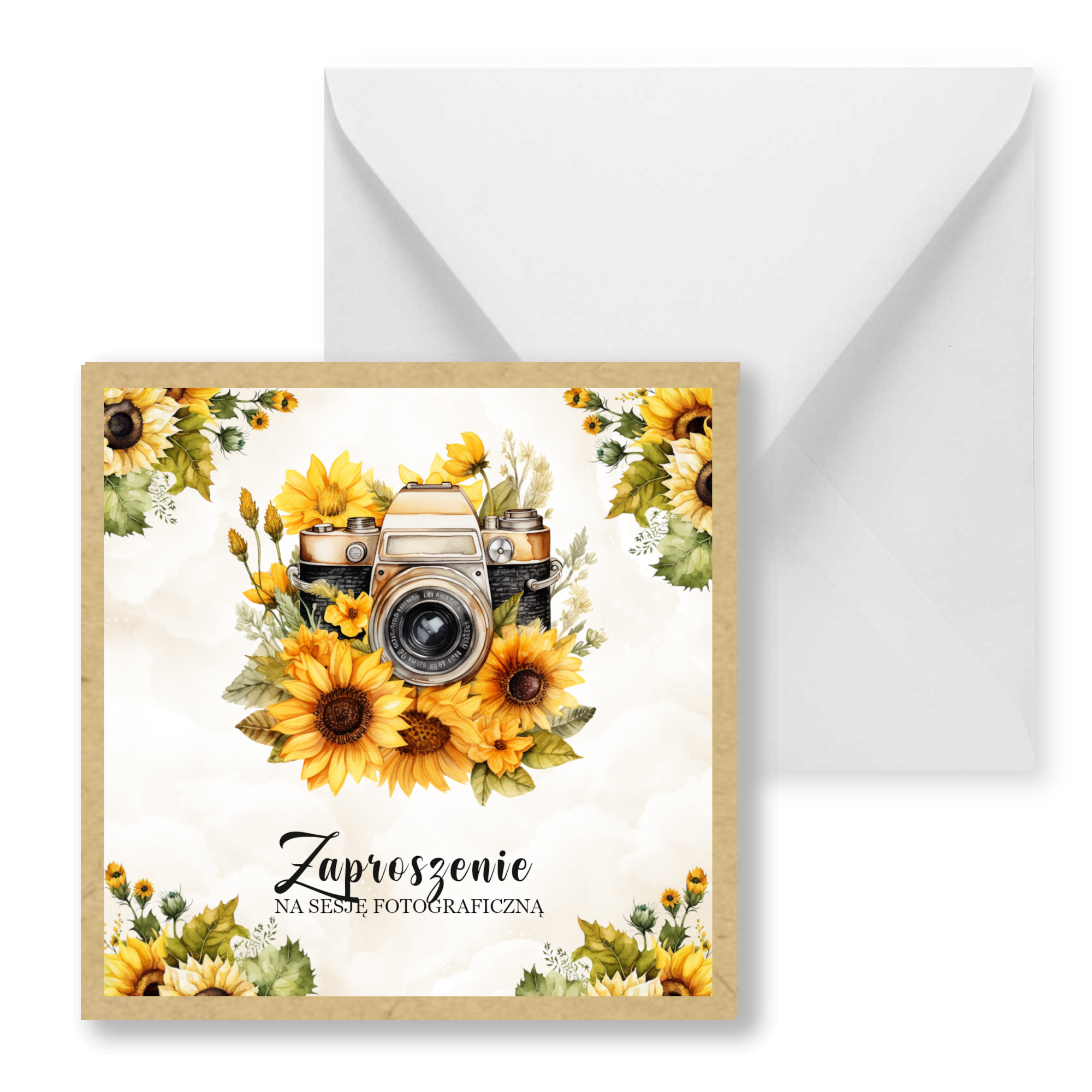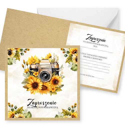Zaproszenia na sesję na podkładzie eko z motywem graficznym. Format 14cm.